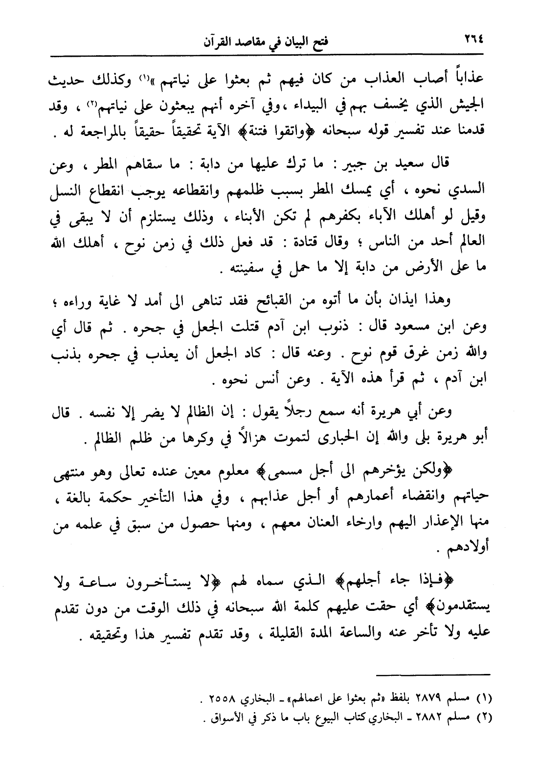 (فإذا جاء أجلهم) الذي سماه لهم (لا يستأخرون ساعة ولا يستقدمون) أي حقت عليهم كلمة الله سبحانه في ذلك الوقت من دون تقدم عليه ولا تأخر عنه والساعة المدة القليلة، وقد تقدم تفسير هذا وتحقيقه.