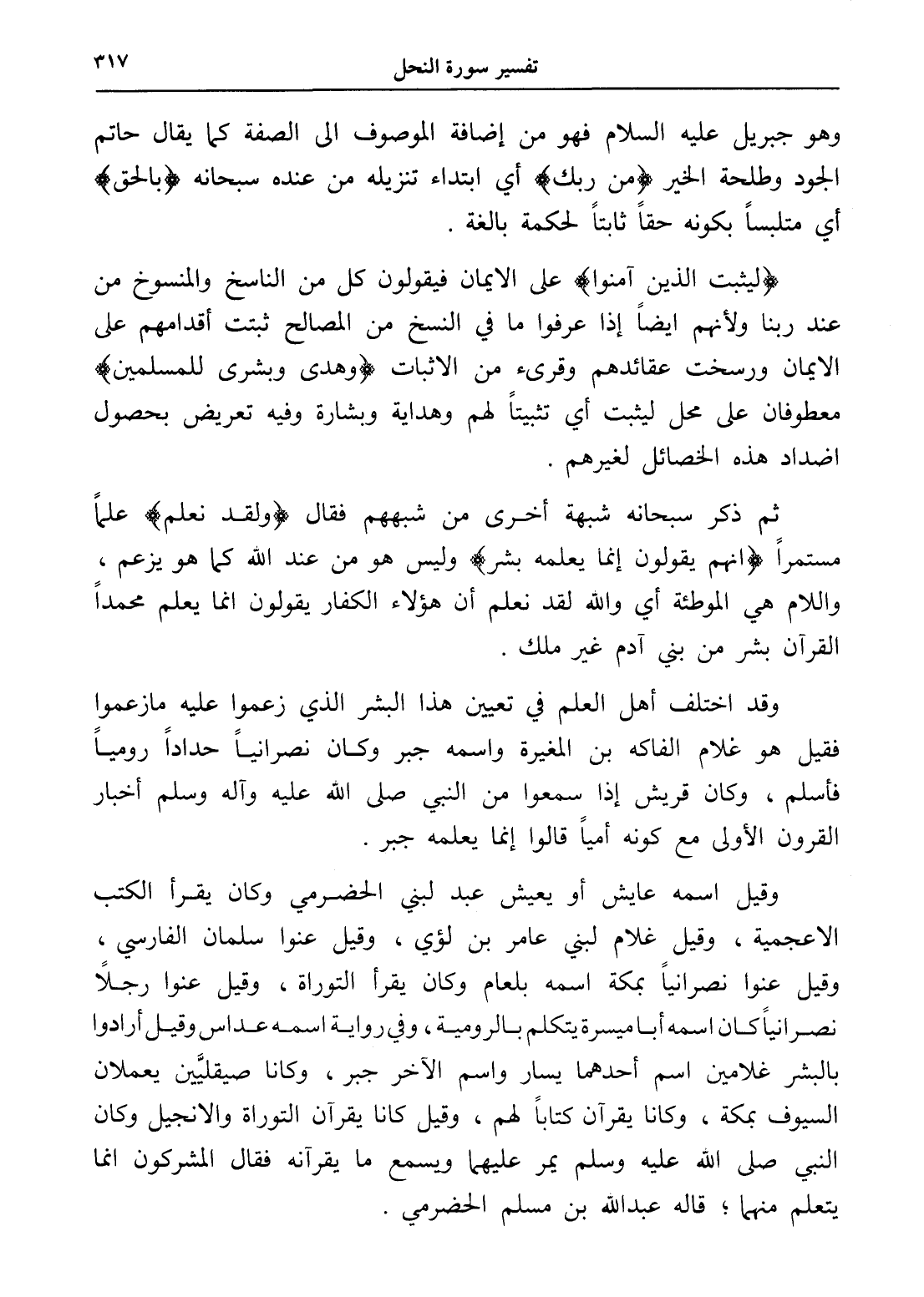 وقد اختلف أهل العلم في تعيين هذا البشر الذي زعموا عليه ما زعموا فقيل هو غلام الفاكه بن المغيرة واسمه جبر وكان نصرانياً حداداً رومياً فأسلم، وكان قريش إذا سمعوا من النبي صلى الله عليه وآله وسلم أخبار القرون الأولى مع كونه أمياً قالوا إنما يعلمه جبر.