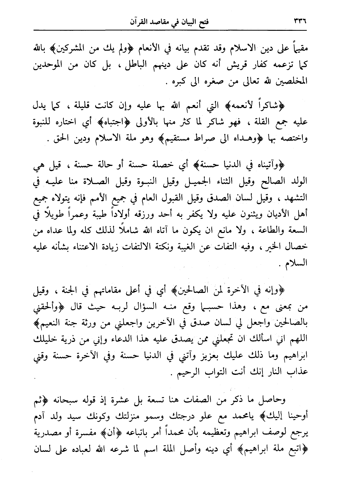 مقيماً على دين الإسلام وقد تقدم بيانه في الأنعام (ولم يك من المشركين) بالله كما تزعمه كفار قريش أنه كان على دينهم الباطل، بل كان من الموحدين المخلصين لله تعالى من صغره إلى كبره.