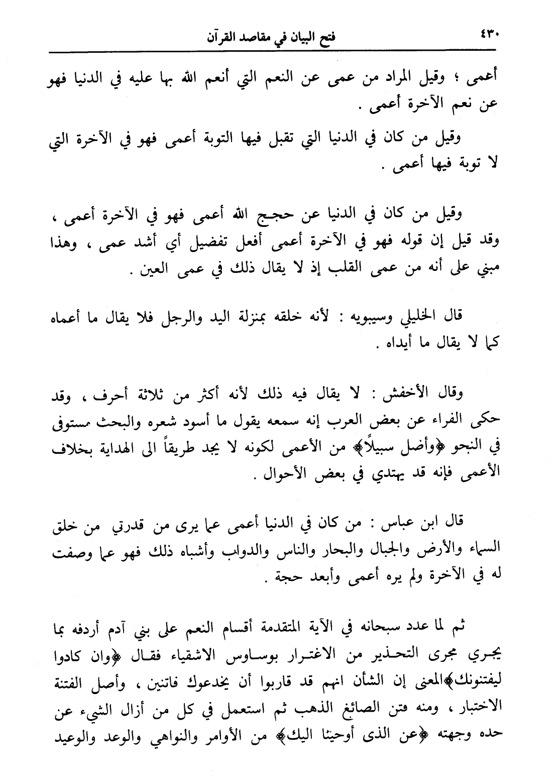 وقال الأخفش: لا يقال فيه ذلك لأنه أكثر من ثلاثة أحرف، وقد حكى الفراء عن بعض العرب إنه سمعه يقول ما أسود شعره والبحث مستوفى في النجو (وأضل سبيلاً) من الأعمى لكونه لا يجد طريقاً إلى الهداية بخلاف الأعمى فإنه قد يهتدي في بعض الأحوال.
