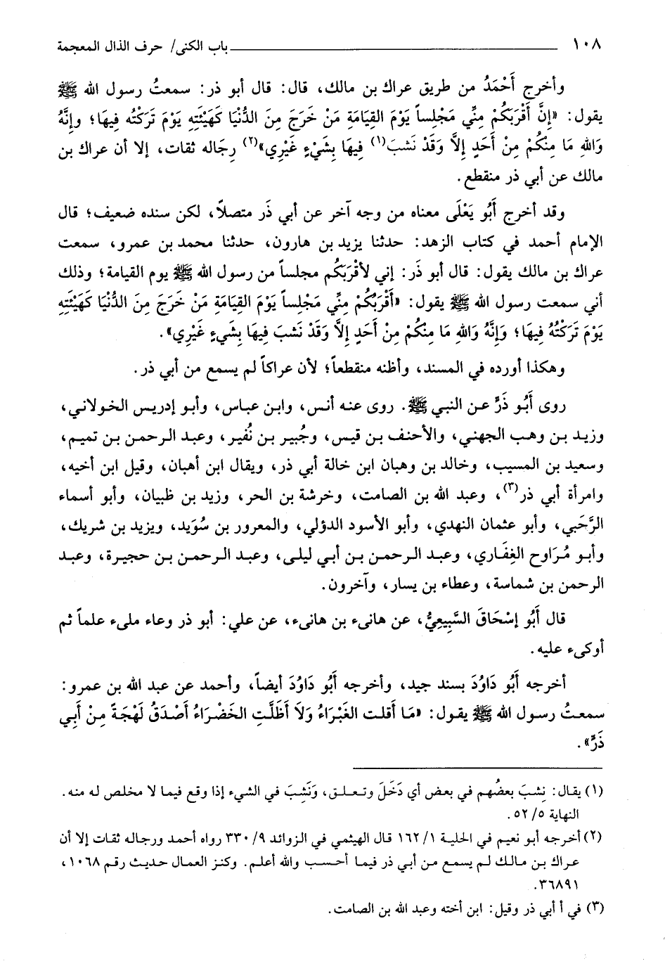 (٢) أخرجه أبو نعيم في الحلية ١/ ١٦٢ قال الهيثمي في الزوائد ٩/ ٣٣٠ رواه أحمد ورجاله ثقات إلا أن عراك بن مالك لم يسمع من أبي ذر فيما أحسب واللَّه أعلم. وكنز العمال حديث رقم ١٠٦٨، ٣٦٨٩١.