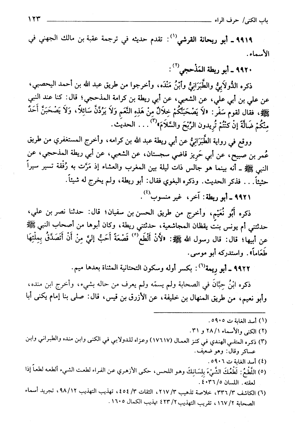 (٦) الكاشف ٣/ ٣٣٦، خلاصة تذهيب ٣/ ٢١٧، الثقات ٣/ ٤٥٤، تهذيب التهذيب ١٢/ ٩٨، تجريد أسماء الصحابة ٢/ ١٦٧، تقريب التهذيب ٢/ ٤٢٣ تهذيب الكمال ١٦٠٥.