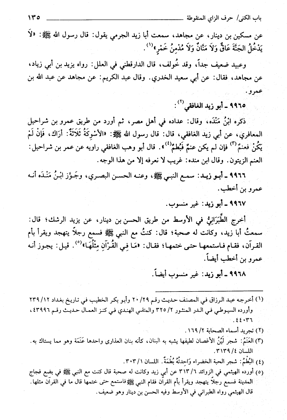عن مسكين بن دينار، عن مجاهد، سمعت أبا زيد الجرمي يقول: قال رسول اللَّه صلى اللَّه عليه وسلّم: «لا يدخل الجنّة عاق ولا منّان ولا مدمن خمر» «١» .