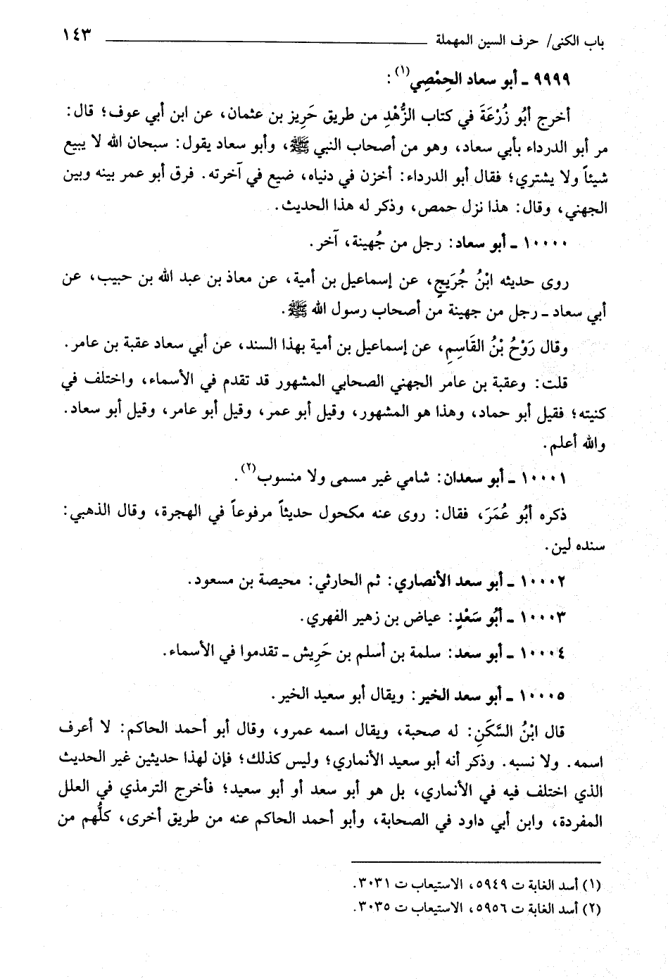 (٢) أسد الغابة ت ٥٩٥٦، الاستيعاب ت ٣٠٣٥.