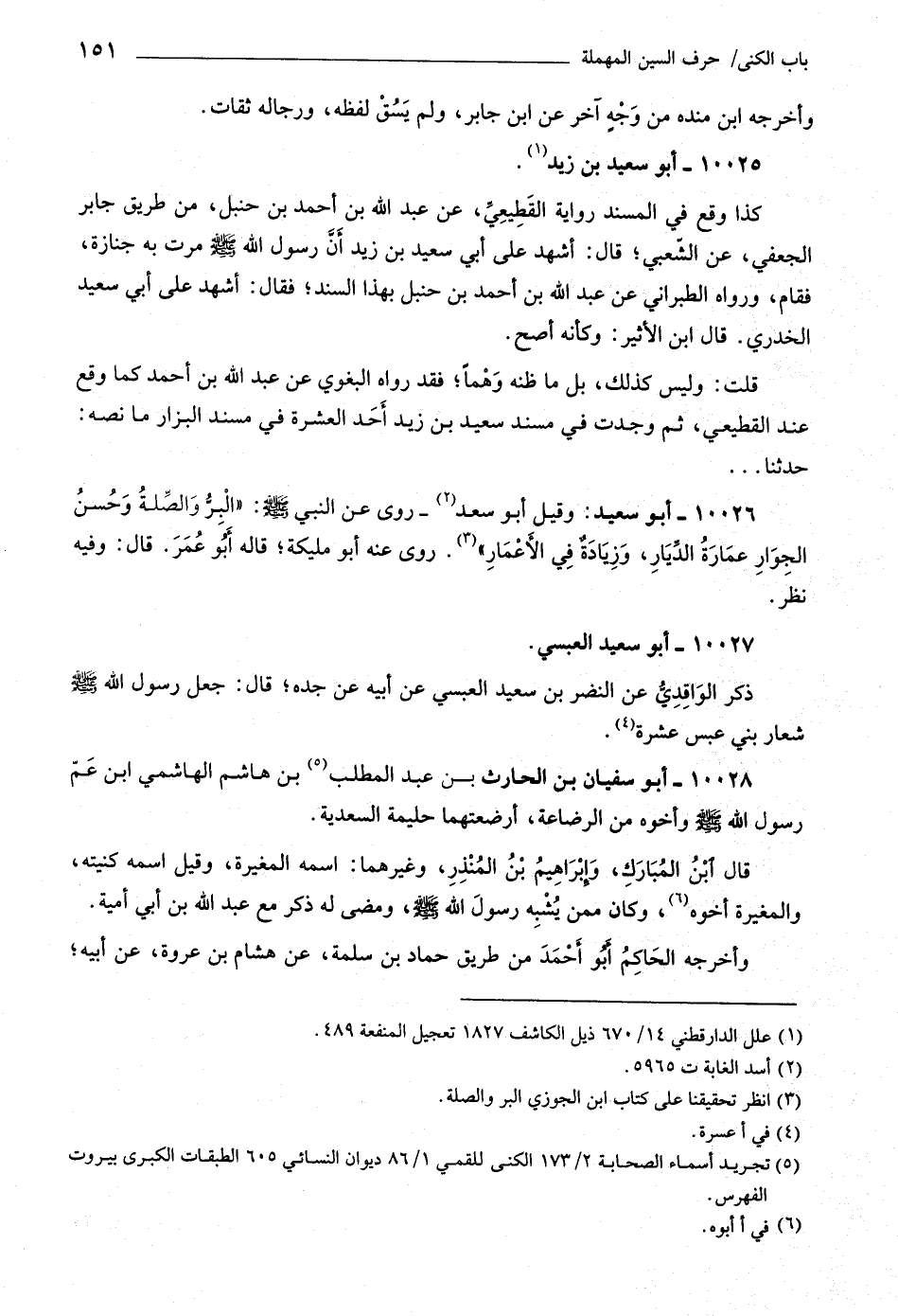 (٥) تجريد أسماء الصحابة ٢/ ١٧٣ الكنى للقمي ١/ ٨٦ ديوان النسائي ٦٠٥ الطبقات الكبرى بيروت الفهرس.