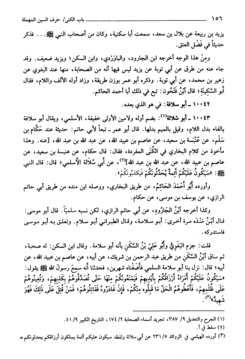 (١) الجرح والتعديل ٩/ ٣٨٧، تجريد أسماء الصحابة ٢/ ١٧٤، التاريخ الكبير ٩/ ٤١.