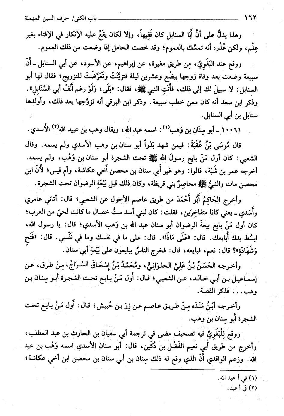 وأخرجه الحسن بن عليّ الحلوانيّ، ومحمّد بن إسحاق السّراج، من طرق، عن إسماعيل بن أبي خالد، عن الشعبي، قال: أول من بايع تحت الشجرة أبو سنان بن وهب ... فذكر القصة.