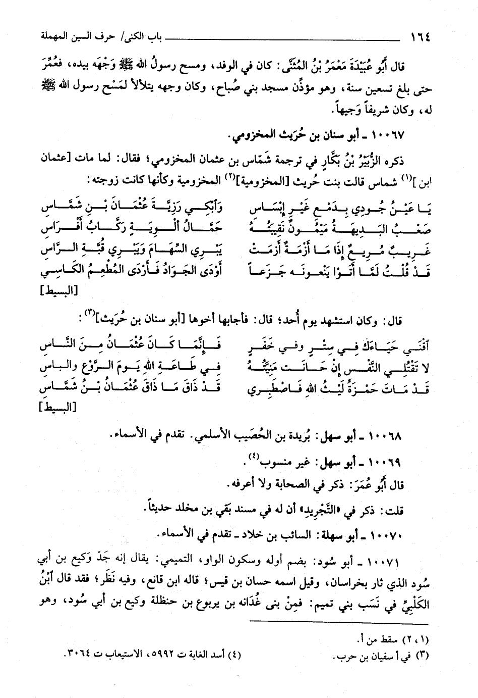 ١٠٠٦٧- أبو سنان بن حريث المخزومي.