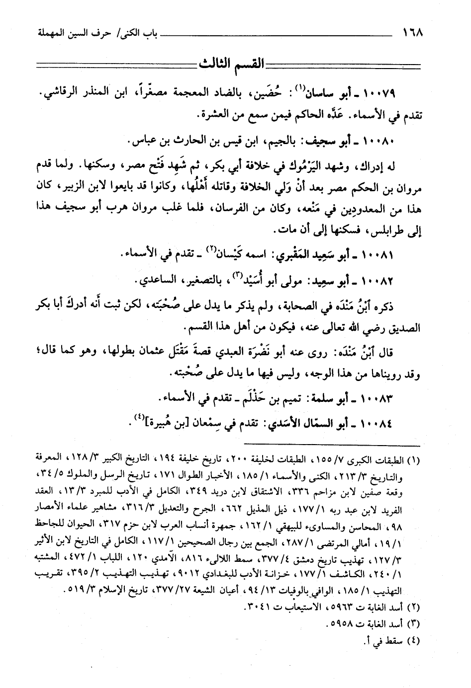 (١) الطبقات الكبرى ٧/ ١٥٥، الطبقات لخليفة ٢٠٠، تاريخ خليفة ١٩٤، التاريخ الكبير ٣/ ١٢٨، المعرفة والتاريخ ٣/ ٢١٣، الكنى والأسماء ١/ ١٨٥، الأخبار الطوال ١٧١، تاريخ الرسل والملوك ٥/ ٣٤، وقعة صفين لابن مزاحم ٣٣٦، الاشتقاق لابن دريد ٣٤٩، الكامل في الأدب للمبرد ٣/ ١٣، العقد الفريد لابن عبد ربه ١/ ١٧٧، ذيل المذيل ٦٦٢، الجرح والتعديل ٣/ ٣١٦، مشاهير علماء الأمصار ٩٨، المحاسن والمساوئ للبيهقي ١/ ١٦٢، جمهرة أنساب العرب لابن حزم ٣١٧، الحيوان للجاحظ ١/ ١٩، أمالي المرتضى ١/ ٢٨٧، الجمع بين رجال الصحيحين ١/ ١١٧، الكامل في التاريخ لابن الأثير ٣/ ١٢٧، تهذيب تاريخ دمشق ٤/ ٣٧٧، سمط اللآلئ ٨١٦، الآمدي ١٢٠، اللباب ١/ ٤٧٢، المشتبه ١/ ٢٤٠، الكاشف ١/ ١٧٧، خزانة الأدب للبغدادي ٩٠١٢، تهذيب التهذيب ٢/ ٣٩٥، تقريب التهذيب ١/ ١٨٥، الوافي بالوفيات ١٣/ ٩٤، أعيان الشيعة ٢٧/ ٣٧٧، تاريخ الإسلام ٣/ ٥١٩.