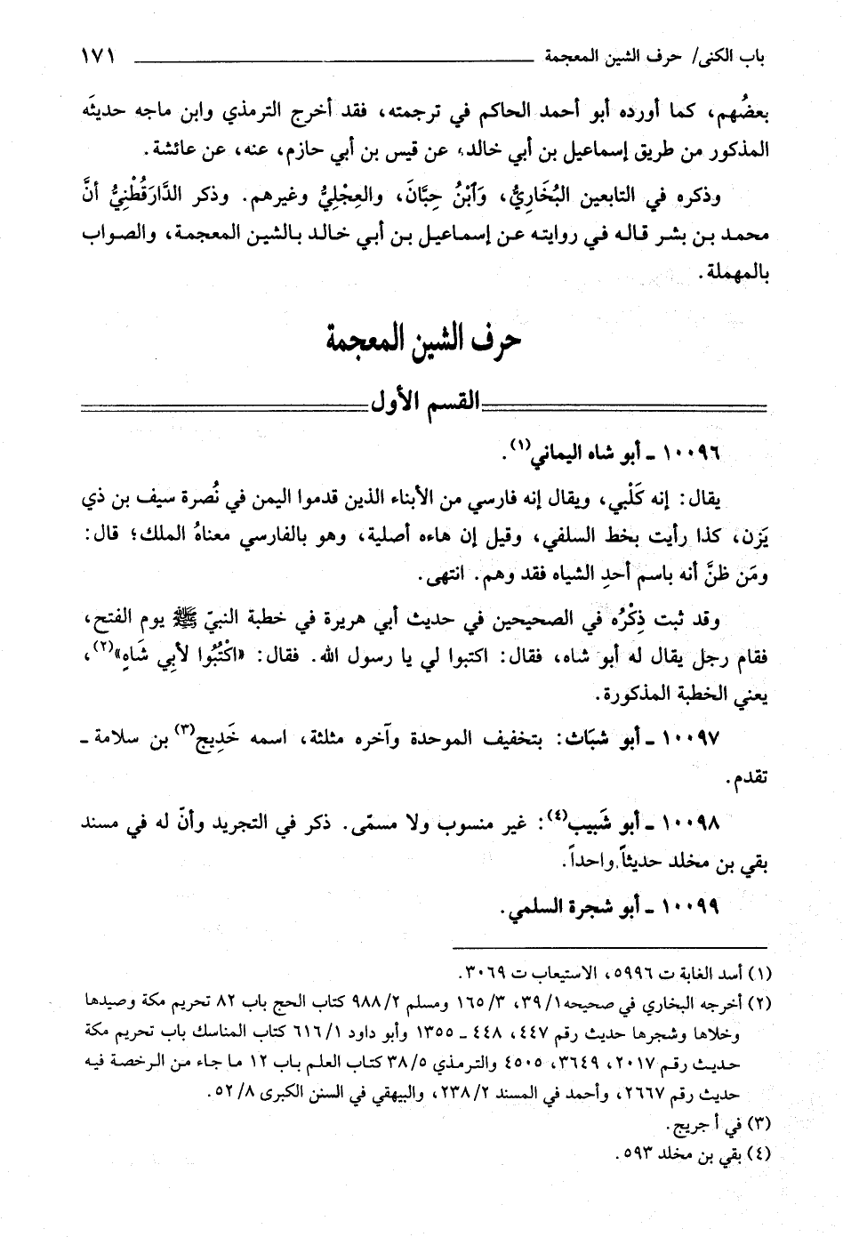 وقد ثبت ذكره في الصحيحين في حديث أبي هريرة في خطبة النبيّ صلى اللَّه عليه وسلّم يوم الفتح، فقام رجل يقال له أبو شاه، فقال: اكتبوا لي يا رسول اللَّه. فقال: «اكتبوا لأبي شاه» «٢» ،