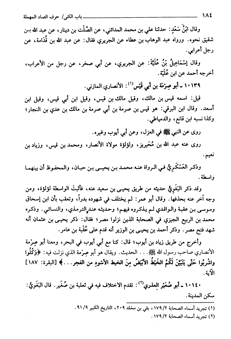 (١) تجريد أسماء الصحابة ٢/ ١٧٩، بقي بن مخلد ٢٠٩، التاريخ الكبير ٩/ ٩١.