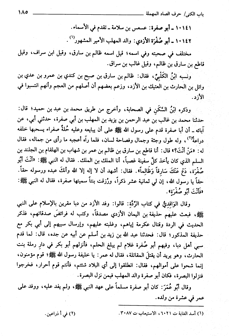 وقال أبو عمر: كان أبو صفرة مسلما على عهد النبي صلى اللَّه عليه وسلّم، ولم يفد عليه، ووفد على عمر في عشرة من ولده.