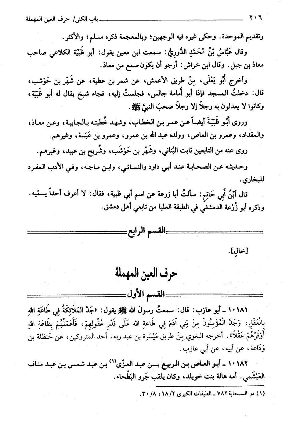 (١) در السحابة ٧٨٢- الطبقات الكبرى ٢/ ١٨، ٨/ ٣٠.