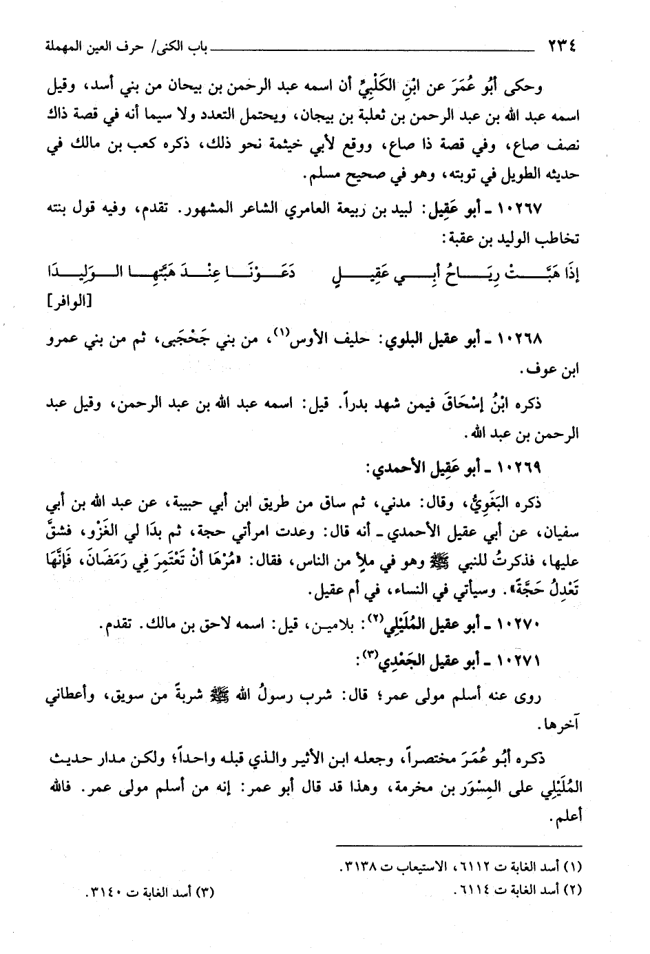 (٣) أسد الغابة ت ٣١٤٠.