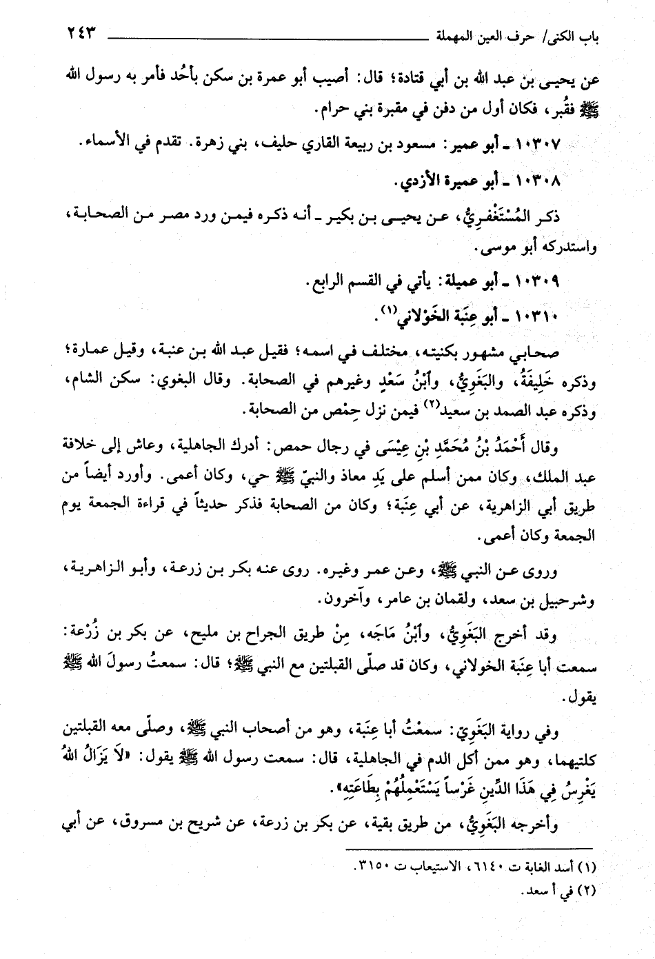(١) أسد الغابة ت ٦١٤٠، الاستيعاب ت ٣١٥٠.