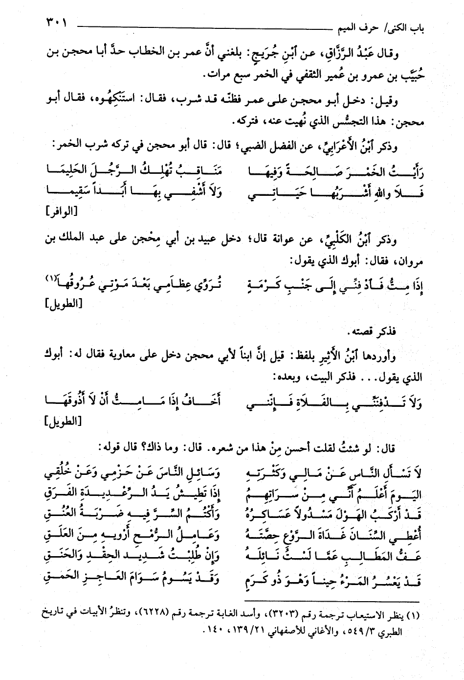(١) ينظر الاستيعاب ترجمة رقم (٣٢٠٣) ، وأسد الغابة ترجمة رقم (٦٢٢٨) ، وتنظر الأبيات في تاريخ الطبري ٣/ ٥٤٩، والأغاني للأصفهاني ٢١/ ١٣٩، ١٤٠.