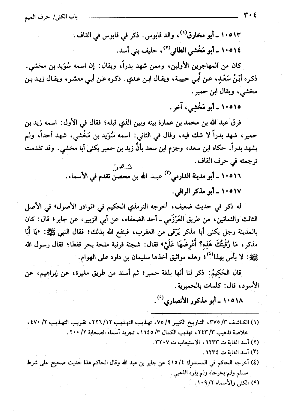 (١) الكاشف ٣/ ٣٧٥، التاريخ الكبير ٩/ ٧٥، تهذيب التهذيب ١٢/ ٢٢٦، تقريب التهذيب ٢/ ٤٧٠، خلاصة تذهيب ٣/ ٢٤٣، تهذيب الكمال ٣/ ١٦٤٥، تجريد أسماء الصحابة ٢/ ٢٠٠.