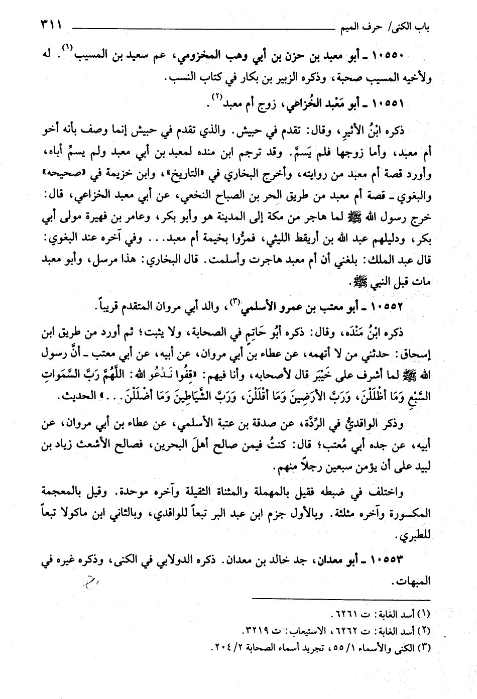 (٣) الكنى والأسماء ١/ ٥٥، تجريد أسماء الصحابة ٢/ ٢٠٤.