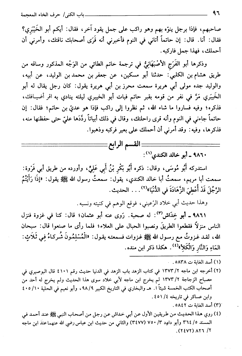 (٤) روي هذا الحديث من طريقين الأول عن أبي خداش عن رجل من أصحاب النبي صلى اللَّه عليه وسلّم عند أحمد في المسند ٥/ ٣٦٤ وأبو داود ٣/ ٧٥٠ (٣٤٧٧) والثاني من حديث ابن عباس رضي اللَّه عنهما عند ابن ماجة ٢/ ٨٢٦ (٢٤٧٢) .