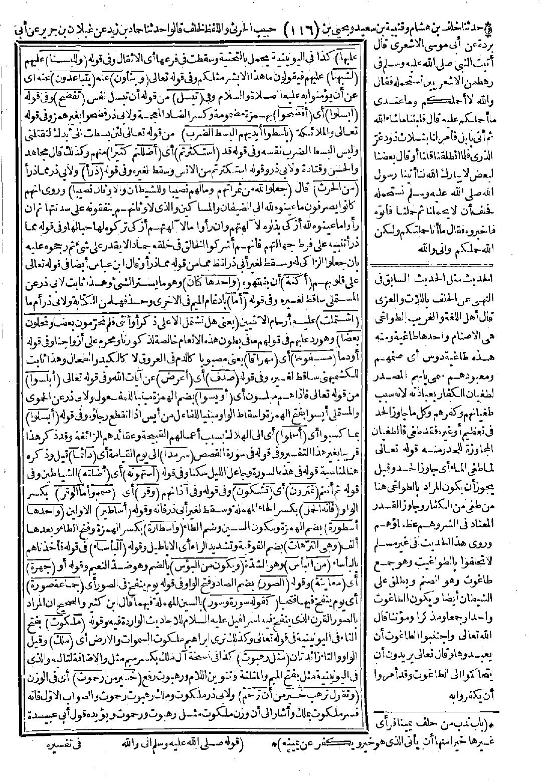 وقال ابن عباس أيضًا في قوله تعالى: {على قلوبهم} ({أكنة}) [الأنعام: 25] أن يفقهوه (واحدها كنان) وهو ما يستر الشيء وهذا ثابت لأبي ذر عن المستملي ساقط لغيره وفي قوله: ({أما}) بإدغام الميم في الأخرى وحذفها من الكتابة ولأبي ذر: أم ما ({اشتملت}) [الأنعام: 143] عليه أرحام الأنثيين (يعني هل تشتمل إلا على ذكر أو أنثى فلم تحرمون بعضًا وتحلّون بعضًا) وهو رد عليهم في قولهم: ({ما في بطون هذه الأنعام خالصة لذكورنا} ومحرم على أزواجنا. وفي قوله: {أو دمًا} ({مسفوحًا}) أي (مهراقًا) يعني مصبوبًا كالدم في العروق لا كالكبد والطحال وهذا ثابت للكشميهني ساقط لغيره، وفي قوله: ({صدف}) أي (أعرض) عن آيات الله، وفي قوله تعالى: ({أبلسوا}) من قوله تعالى: {فإذا هم مبلسون} أي (أويسوا) بضم الهمزة مبنيًّا للمفعول ولأبي ذر عن الحموي والمستملي أيسوا بفتح الهمزة وإسقاط الواو مبنيًّا للفاعل من أيس إذا انقطع رجاؤه، وفي قوله: {أبلسوا} بما كسبوا أي (أسلموا) أي إلى الهلاك بسبب أعمالهم القبيحة وعقائدهم الزائغة وقد ذكر هذا قريبًا بغير هذا التفسير وفي قوله في سورة