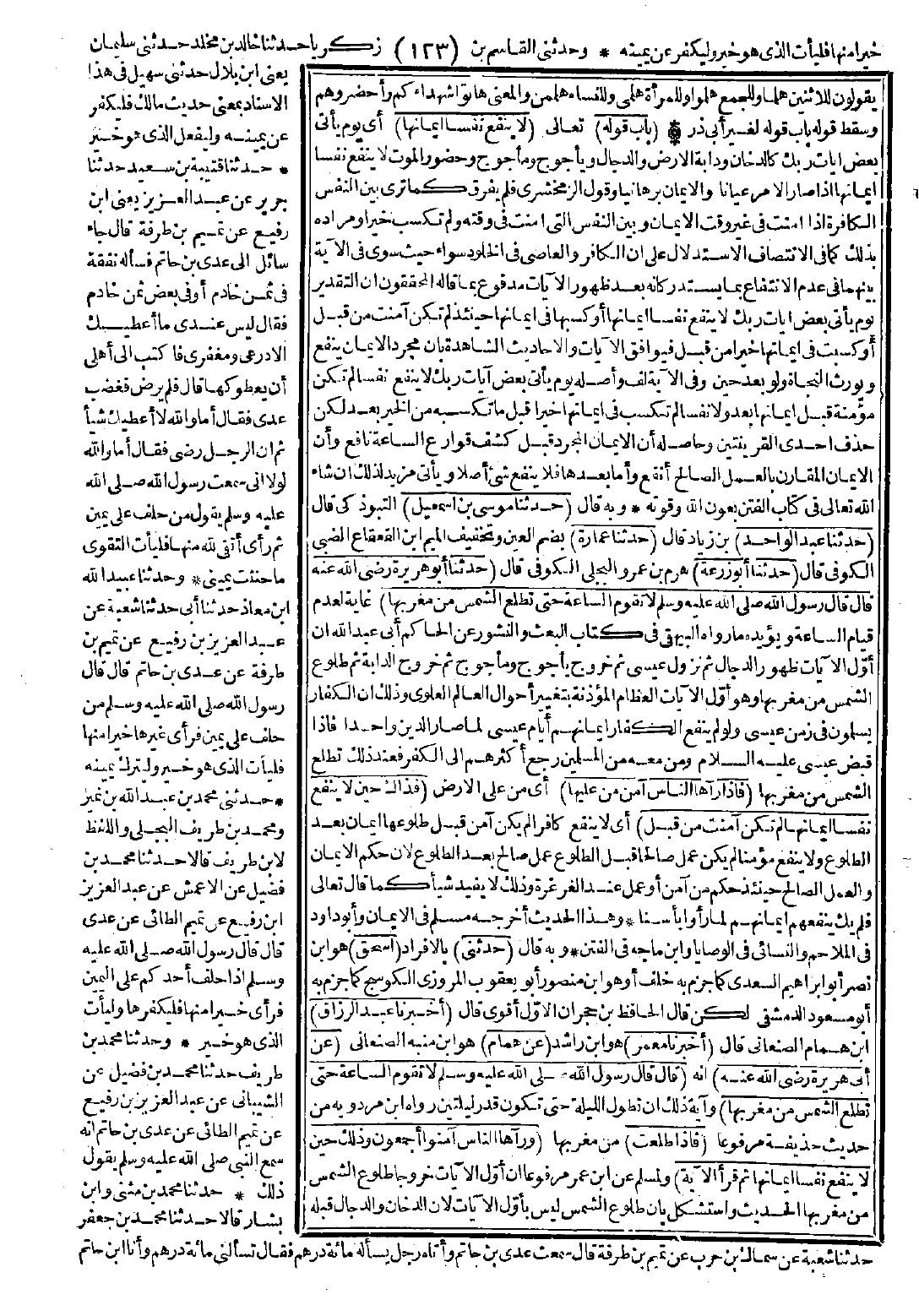 4636 - حَدَّثَنِي إِسْحَاقُ أَخْبَرَنَا عَبْدُ الرَّزَّاقِ، أَخْبَرَنَا مَعْمَرٌ، عَنْ هَمَّامٍ عَنْ أَبِي هُرَيْرَةَ -رضي الله عنه- قَالَ: قَالَ رَسُولُ اللَّهِ -صَلَّى اللَّهُ عَلَيْهِ وَسَلَّمَ-: «لاَ تَقُومُ السَّاعَةُ حَتَّى تَطْلُعَ الشَّمْسُ مِنْ مَغْرِبِهَا فَإِذَا طَلَعَتْ وَرَآهَا النَّاسُ آمَنُوا أَجْمَعُونَ وَذَلِكَ حِينَ لاَ يَنْفَعُ نَفْسًا إِيمَانُهَا» ثُمَّ قَرَأَ الآيَةَ.