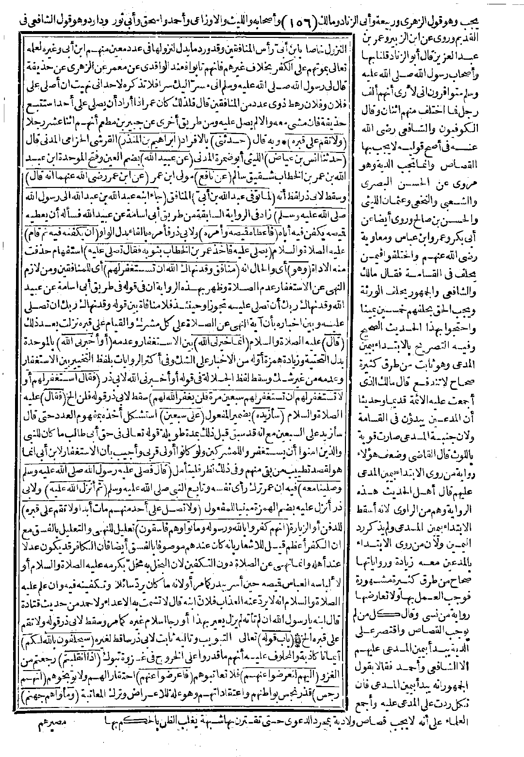 4672 - حَدَّثَنِي إِبْرَاهِيمُ بْنُ الْمُنْذِرِ، حَدَّثَنَا أَنَسُ بْنُ عِيَاضٍ، عَنْ عُبَيْدِ اللَّهِ عَنْ نَافِعٍ، عَنِ ابْنِ عُمَرَ -رضي الله عنهما- أَنَّهُ قَالَ: لَمَّا تُوُفِّيَ عَبْدُ اللَّهِ بْنُ أُبَيٍّ جَاءَ ابْنُهُ عَبْدُ اللَّهِ بْنُ عَبْدِ اللَّهِ إِلَى رَسُولِ اللَّهِ -صَلَّى اللَّهُ عَلَيْهِ وَسَلَّمَ-، فَأَعْطَاهُ قَمِيصَهُ وَأَمَرَهُ أَنْ يُكَفِّنَهُ فِيهِ ثُمَّ قَامَ يُصَلِّي عَلَيْهِ فَأَخَذَ عُمَرُ بْنُ الْخَطَّابِ بِثَوْبِهِ فَقَالَ: تُصَلِّى عَلَيْهِ وَهْوَ مُنَافِقٌ وَقَدْ نَهَاكَ اللَّهُ أَنْ تَسْتَغْفِرَ لَهُمْ؟ قَالَ: «إِنَّمَا خَيَّرَنِي اللَّهُ -أَوْ أَخْبَرَنِي اللهُ- فَقَالَ: {اسْتَغْفِرْ لَهُمْ أَوْ لاَ تَسْتَغْفِرْ لَهُمْ إِنْ تَسْتَغْفِرْ لَهُمْ سَبْعِينَ مَرَّةً فَلَنْ يَغْفِرَ اللَّهُ لَهُمْ} فَقَالَ: سَأَزِيدُهُ عَلَى سَبْعِينَ» قَالَ: فَصَلَّى عَلَيْهِ رَسُولُ اللَّهِ -صَلَّى اللَّهُ عَلَيْهِ وَسَلَّمَ- وَصَلَّيْنَا مَعَهُ ثُمَّ أَنْزَلَ اللَّهُ عَلَيْهِ {وَلاَ تُصَلِّ عَلَى أَحَدٍ مِنْهُمْ مَاتَ أَبَدًا وَلاَ تَقُمْ عَلَى قَبْرِهِ إِنَّهُمْ كَفَرُوا بِاللَّهِ وَرَسُولِهِ وَمَاتُوا وَهُمْ فَاسِقُونَ}. [التوبة: 84]