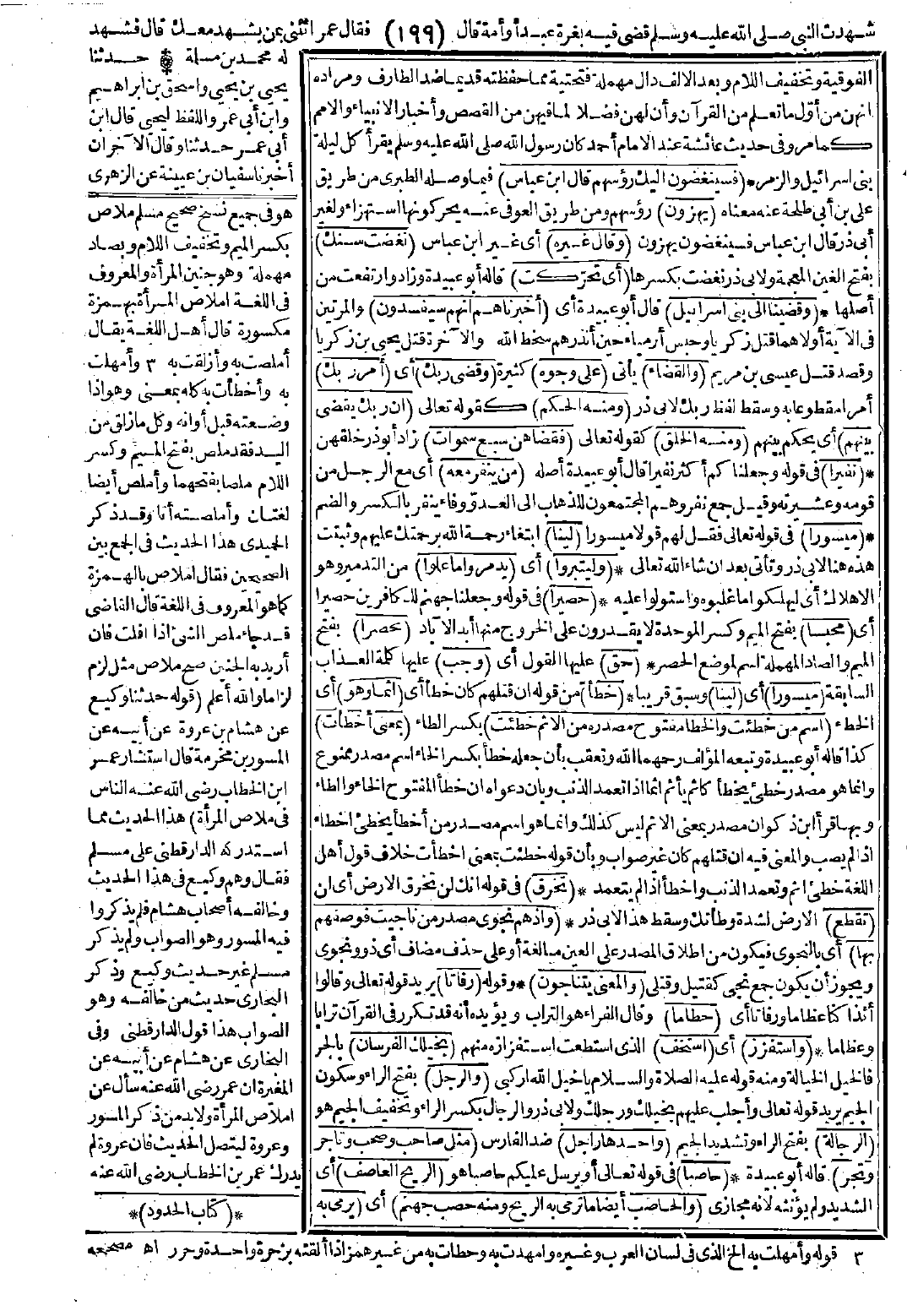 {وَقَضَيْنَا إِلَى بَنِي إِسْرَائِيلَ} [الإسراء: 4] أَخْبَرْنَاهُمْ أَنَّهُمْ سَيُفْسِدُونَ وَالْقَضَاءُ عَلَى وُجُوهٍ. وَقَضَى رَبُّكَ أَمَرَ رَبُّكَ، وَمِنْهُ الْحُكْمُ إِنَّ رَبَّكَ يَقْضِي بَيْنَهُمْ. وَمِنْهُ الْخَلْقُ فَقَضَاهُنَّ سَبْعَ سَمَوَاتٍ. نَفِيرًا: مَنْ يَنْفِرُ مَعَهُ، مَيْسُورًا: لَيِّنًا. وَلِيُتَبِّرُوا. يُدَمِّرُوا مَا عَلَوْا، حَصِيرًا: مَحْبِسًا: مَحْصَرًا، حَقَّ: وَجَبَ، مَيْسُورًا: لَيِّنًا، خِطْأً إِثْمًا وَهْوَ اسْمٌ مِنْ خَطِئْتُ وَالْخَطَأُ مَفْتُوحٌ مَصْدَرُهُ مِنَ الإِثْمِ خَطِئْتُ بِمَعْنَى أَخْطَأْتُ. تَخْرِقَ: تَقْطَعَ، وَإِذْ هُمْ نَجْوَى مَصْدَرٌ مِنْ نَاجَيْتُ فَوَصَفَهُمْ بِهَا وَالْمَعْنَى يَتَنَاجَوْنَ. رُفَاتًا: حُطَامًا، وَاسْتَفْزِزْ: اسْتَخِفَّ بِخَيْلِكَ الْفُرْسَانِ، وَالرَّجْلُ الرَّجَّالَةُ وَاحِدُهَا رَاجِلٌ مِثْلُ صَاحِبٍ وَصَحْبٍ وَتَاجِرٍ: وَتَجْرٍ: حَاصِبًا: الرِّيحُ الْعَاصِفُ. وَالْحَاصِبُ أَيْضًا: مَا تَرْمِي بِهِ الرِّيحُ وَمِنْهُ حَصَبُ جَهَنَّمَ يُرْمَى بِهِ فِي جَهَنَّمَ وَهْوَ حَصَبُهَا، وَيُقَالُ: حَصَبَ فِي الأَرْضِ ذَهَبَ، وَالْحَصَبُ مُشْتَقٌّ مِنَ الْحَصْبَاءِ وَالْحِجَارَةِ. تَارَةً: مَرَّةً وَجَمَاعَتُهُ تِيَرَةٌ وَتَارَاتٌ. لأَحْتَنِكَنَّ: لأَسْتَأْصِلَنَّهُمْ يُقَالُ: احْتَنَكَ فُلاَنٌ مَا عِنْدَ فُلاَنٍ مِنْ عِلْمٍ اسْتَقْصَاهُ. طَائِرَهُ: حَظُّهُ، قَالَ ابْنُ عَبَّاسٍ: كُلُّ سُلْطَانٍ فِي الْقُرْآنِ فَهُوَ حُجَّةٌ. وَلِيٌّ مِنَ الذُّلِّ. لَمْ يُخالِفْ أَحَدًا.