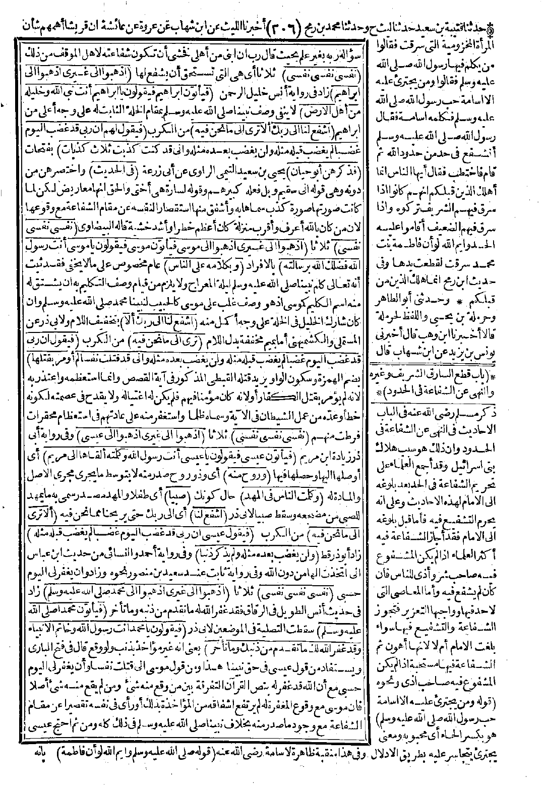 أهلي فخشي أن تكون شفاعته لأهل الموقف من ذلك (نفسي نفسي نفسي) ثلاثًا أي هي التي تستحق أن يشفع لها (اذهبوا إلى غيري اذهبوا إلى إبراهيم) زاد في رواية أن خليل الرحمن (فيأتون إبراهيم فيقولون: يا إبراهيم أنت نبي الله وخليله من أهل الأرض) لا ينفي وصف نبينا -صَلَّى اللَّهُ عَلَيْهِ وَسَلَّمَ- بمقام الخلة الثابت له على وجه أعلى من إبراهيم (اشفع لنا إلى ربك ألا ترى إلى ما نحن فيه) من الكرب (فيقول لهم إن ربي قد غضب اليوم غضبًا لم يغضب قبله مثله ولن يغضب بعده مثله، وإني قد كنت كذبت ثلاث كذبات) بفتحات (فذكرهن أبو حيان) يحيى بن سعيد التيمي الراوي عن أبي زرعة (في الحديث) واختصرهن من دونه وهي قوله: إني سقيم، وبل فعله كبيرهم، وقوله لسارة هي أختي والحق أنها معاريض لكن لما كانت صورتها صورة كذب سماها به وأشفق منها استقصارًا لنفسه عن مقام الشفاعة مع وقوعها لأن من كان بالله أعرف وأقرب منزلة كان أعظم خطرًا وأشد خشية قاله البيضاوي. (نفسي نفسي نفسي) ثلاثًا (اذهبوا إلى غيري، اذهبوا إلى موسى. فيأتون موسى فيقولون يا موسى أنت رسول الله فضّلك الله برسالته) بالإفراد (وبكلامه على الناس) عام مخصوص على ما لا يخفى فقد ثبت أنه تعالى كلّم نبينا -صَلَّى اللَّهُ عَلَيْهِ وَسَلَّمَ- ليلة المعراج ولا يلزم من قيام وصف التكلم به أن يشتق له منه اسم الكليم كموسى إذ هو وصف غلب على موسى كالحبيب لنبينا محمد -صَلَّى اللَّهُ عَلَيْهِ وَسَلَّمَ- وإن كان شارك الخليل في الخلة على وجه أكمل منه (اشفع لنا إلى ربك ألا) بتخفيف اللام ولأبي ذر عن المستملي والكشميهني أما بميم مخففة بدل اللام (ترى إلى ما نحن فيه) من الكرب (فيقول إن ربي قد غضب اليوم غضبًا لم يغضب قبله مثله ولن يغضب بعده مثله، وإني قد قتلت نفسًا لم أومر بقتلها) بضم الهمزة وسكون الواو يريد قتله القبطي المذكور في آية القصص وإنما استعظمته واعتذر به لأنه لم يؤمر بقتل الكفار أو لأنه كان مؤمنًا فيهم فلم يكن له اغتياله ولا يقدح في عصمته لكونه خطأ وعدّه من عمل الشيطان في الآية، وسماه ظلمًا واستغفر منه على عادتهم في استعظام محقرات فرطت منهم (نفسي نفسي نفسي) ثلاثًا (اذهبوا إلى غيري اذهبوا إلى عيسى) وفي رواية أبي ذر زيادة ابن مريم (فيأتون عيسى فيقولون يا عيسى أنت رسول الله وكلمته ألقاها إلى مريم) أي أوصلها إليها وحصلها فيها (وروح منه) أي وذو روح صدر منه لا بتوسط ما يجري مجرى الأصل والمادة له (وكلمت الناس في المهد) حال كونك (صبيًّا) أي طفلًا والمهد مصدر سمي به ما يمهد للصبي من مضجعه وسقط صبيًّا لأبي ذر (اشفع لنا) أي إلى ربك حتى يريحنا مما نحن فيه (ألا ترى إلى ما نحن فيه) من الكرب (فيقول عيسى: إن ربي غضب اليوم غضبًا لم يغضب قبله مثله) زاد أبو ذر قط (ولن يغضب بعده مثله ولم يذكر ذنبًا) وفي رواية أحمد والنسائي من حديث ابن عباس إني اتخذت إلهًا من دون الله، وفي رواية ثابت عند سعيد بن منصور نحوه وزاد وإن يغفر لي اليوم حسبي (نفسي نفسي نفسي) ثلاثًا (اذهبوا إلى غيري اذهبوا إلى محمد -صَلَّى اللَّهُ عَلَيْهِ وَسَلَّمَ-) زاد في حديث أنس الطويل في الرقاق فقد غفر الله له ما تقدم من ذنبه وما تأخر (فيأتون محمدًا -صَلَّى اللَّهُ عَلَيْهِ وَسَلَّمَ-) سقطت التصلية في الموضعين لأبي ذر (فيقولون يا محمد أنت رسول الله وخاتم الأنبياء وقد غفر الله لك ما تقدم من ذنبك وما تأخر) يعني أنه غير مؤاخذ بذنب ولو وقع.