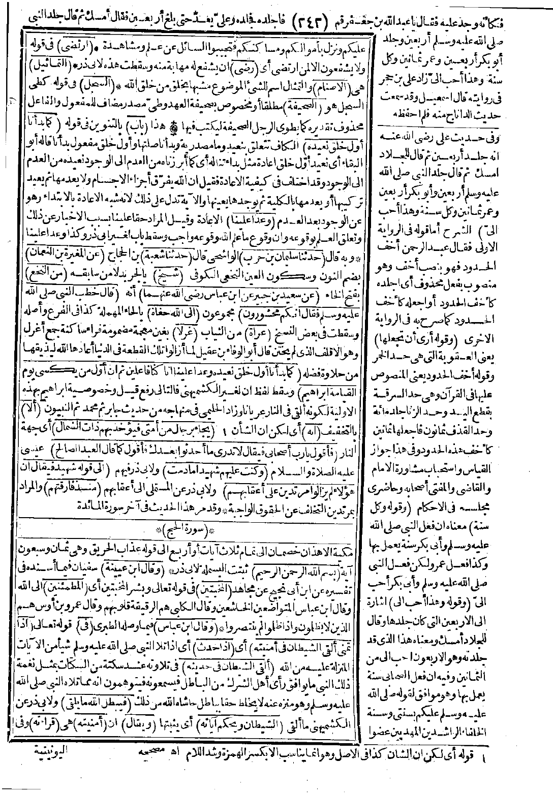 (بِسْمِ اللهِ الرَّحْمَنِ الرَّحِيمِ) وَقَالَ ابْنُ عُيَيْنَةَ الْمُخْبِتِينَ: الْمُطْمَئِنِّينَ، وَقَالَ ابْنُ عَبَّاسٍ فِي {إِذَا تَمَنَّى أَلقَى الشَّيْطَانُ فِي أُمْنِيَّتِهِ} إِذَا حَدَّثَ أَلْقَى الشَّيْطَانُ فِي حَدِيثِهِ فَيُبْطِلُ اللَّهُ مَا يُلْقِي الشَّيْطَانُ وَيُحْكِمُ آيَاتِهِ. وَيُقَالُ: أُمْنِيَّتُهُ: قِرَاءَتُهُ، إِلاَّ أَمَانِيَّ يَقْرَءُونَ وَلاَ يَكْتُبُونَ. وَقَالَ مُجَاهِدٌ: مَشِيدٌ بِالْقَصَّةِ. وَقَالَ غَيْرُهُ: وَقَالَ غَيْرُهُ: يَسْطُونَ: يَفْرُطُونَ مِنَ السَّطْوَةِ، وَيُقَالُ يَسْطُونَ يَبْطُشُونَ. {وَهُدُوا إِلَى الطَّيِّبِ مِنَ الْقَوْلِ} أُلْهِمُوا. {وَهُدُوا إِلَى صِرَاطِ الحَمِيدِ} الإِسْلاَمِ، وَقَالَ ابْنُ عَبَّاسٍ: بِسَبَبٍ بِحَبْلٍ إِلَى سَقْفِ الْبَيْتِ: تَذْهَلُ تُشْغَلُ.