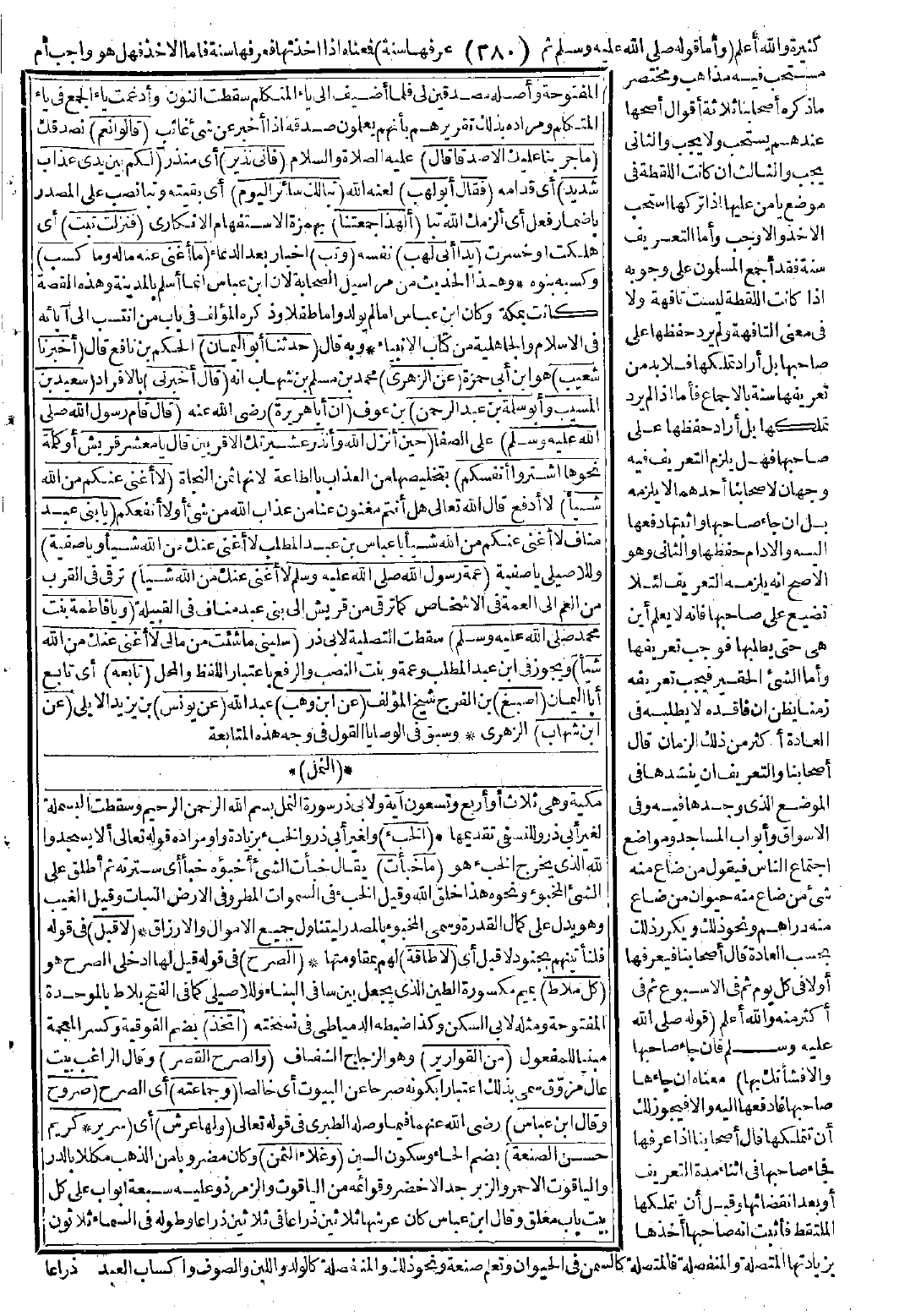 ({الصرح}) في قوله: {قيل لها ادخلي الصرح} [النمل: 44] وهو (كل ملاط) بميم مكسورة الطين الذي يجعل بين سافي البناء وللأصيلي كما في الفتح بلاط بالموحدة المفتوحة ومثله لأبي ذر السكن وكذا ضبطه الدمياطي في نسخته (اتخذ) بضم الفوقية وكسر المعجمة مبنيًّا للمفعول (من القوارير) وهو الزجاج الشفاف (والصرح القصر) وقال الراغب: بيت عال مزوّق سمي بذلك اعتبارًا بكونه صرحًا عن البيوت أي خالصًا (وجماعته) أي الصرح (صرح. وقال ابن عباس) -رضي الله عنهما- فيما وصله الطبري في قوله تعالى: {ولها عرش} [النمل: 23] أي (سرير).