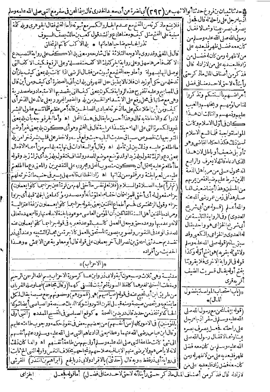 مدنية وهي ثلاث وسبعون آية ولأبي ذر وابن عساكر: سورة الأحزاب بسم الله الرحمن الرحيم وسقطت البسملة لغيرهما كلفظ السورة نعم ثبتت للنسفي لهما.
