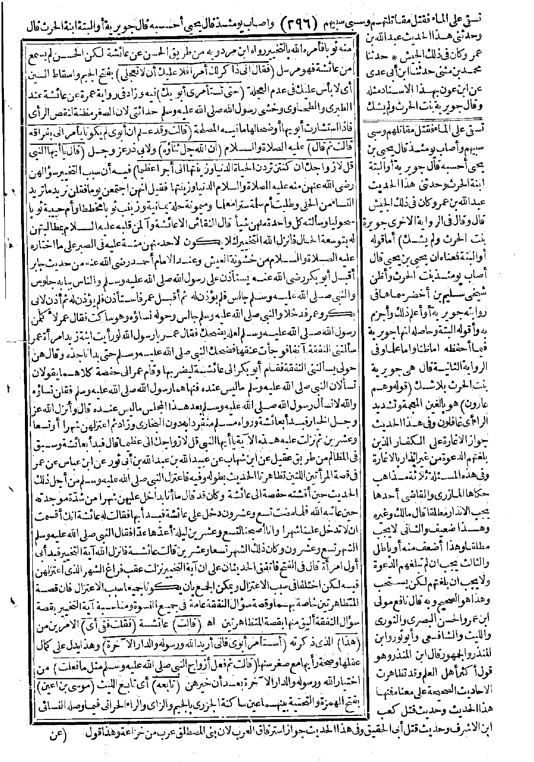 وعند الإمام أحمد -رضي الله عنه- من حديث جابر: أقبل أبو بكر -رضي الله عنه- يستأذن على رسول الله -صَلَّى اللَّهُ عَلَيْهِ وَسَلَّمَ- والناس ببابه جلوس والنبي -صَلَّى اللَّهُ عَلَيْهِ وَسَلَّمَ- جالس فلم يؤذن له، ثم أقبل عمر فاستأذن فلم يؤذن له، ثم أذن لأبي بكر وعمر فدخلا والنبي -صَلَّى اللَّهُ عَلَيْهِ وَسَلَّمَ- جالس وحوله نساؤه وهو ساكت فقال عمر: لأكلمن رسول الله-صَلَّى اللَّهُ عَلَيْهِ وَسَلَّمَ- لعله يضحك فقال عمر: يا رسول الله لو رأيت ابنة زيد امرأة عمر سألتني النفقة آنفًا فوجأت عنقها، فضحك النبي -صَلَّى اللَّهُ عَلَيْهِ وَسَلَّمَ- حتى بدا ناجذه وقال: هن حولي يسألنني النفقة، فقام أبو بكر إلى عائشة ليضربها وقام عمر إلى حفصة كلاهما يقولان تسألان النبي -صَلَّى اللَّهُ عَلَيْهِ وَسَلَّمَ- ما ليس عنده، فنهاهما رسول الله -صَلَّى اللَّهُ عَلَيْهِ وَسَلَّمَ- فقلن نساؤه والله لا نسأل رسول الله -صَلَّى اللَّهُ عَلَيْهِ وَسَلَّمَ- بعد هذا المجلس ما ليس عنده قال: وأنزل الله عز وجل الخيار فبدأ بعائشة. ورواه مسلم منفردًا به دون البخاري وزاد: ثم اعتزلهن شهرًا أو تسعًا وعشرين ثم نزلت عليه هذه الآية: {يا أيها النبي قل لأزواجك إلى عظيمًا} قال فبدأ بعائشة.