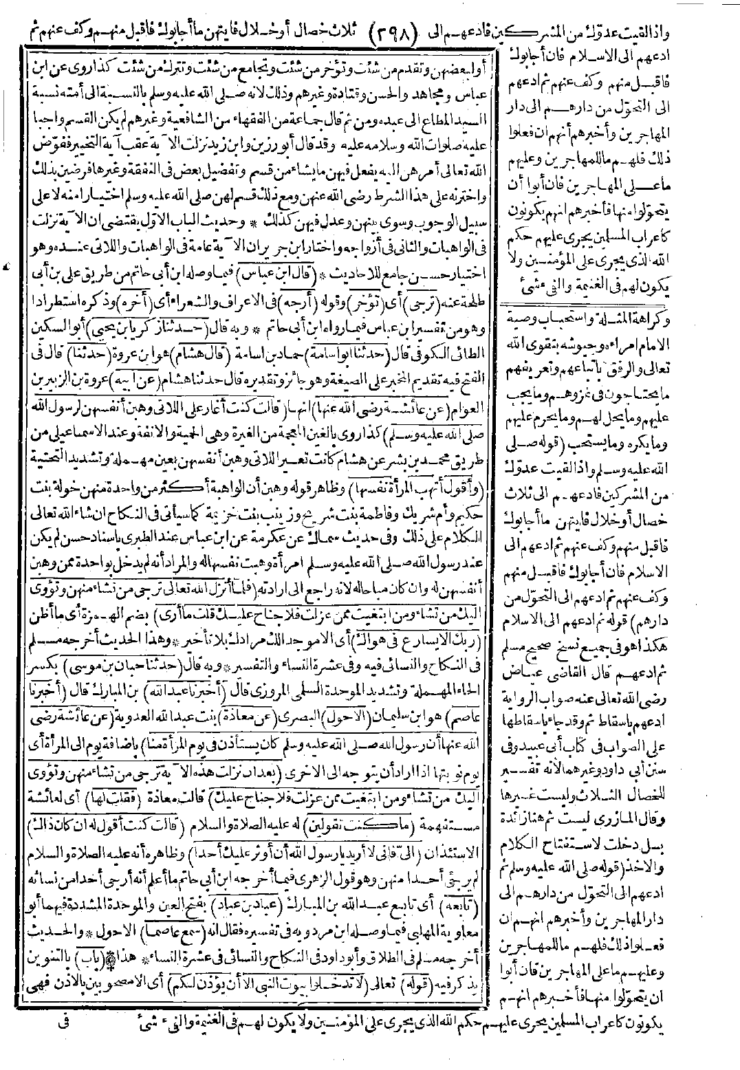 وحديث الباب الأوّل يقتضي إن الآية نزلت في الواهبات، والثاني في أزواجه، واختار ابن جرير أن الآية عامة في الواهبات واللاتي عنده وهو اختيار حسن جامع للأحاديث.