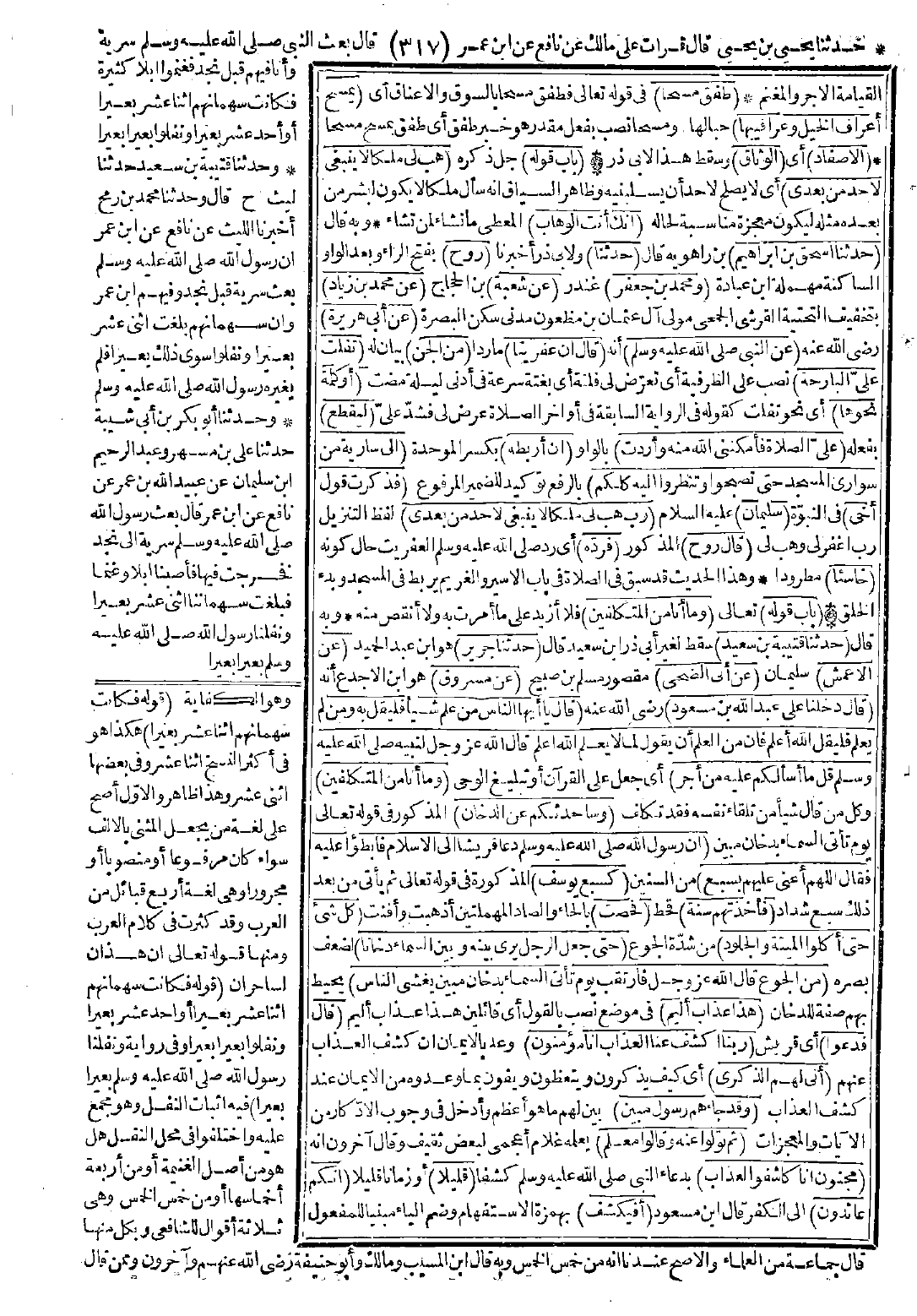 قَالَ: دَخَلْنَا عَلَى عَبْدِ اللَّهِ بْنِ مَسْعُودٍ قَالَ: يَا أَيُّهَا النَّاسُ مَنْ عَلِمَ شَيْئًا فَلْيَقُلْ بِهِ، وَمَنْ لَمْ يَعْلَمْ فَلْيَقُلِ: اللَّهُ أَعْلَمُ. فَإِنَّ مِنَ الْعِلْمِ أَنْ يَقُولَ لِمَا لاَ يَعْلَمُ اللَّهُ أَعْلَمُ. قَالَ اللَّهُ عَزَّ وَجَلَّ لِنَبِيِّهِ -صَلَّى اللَّهُ عَلَيْهِ وَسَلَّمَ-: {قُلْ مَا أَسْأَلُكُمْ عَلَيْهِ مِنْ أَجْرٍ وَمَا أَنَا مِنَ الْمُتَكَلِّفِينَ} [ص: 86] وَسَأُحَدِّثُكُمْ عَنِ الدُّخَانِ، إِنَّ رَسُولَ اللَّهِ -صَلَّى اللَّهُ عَلَيْهِ وَسَلَّمَ- دَعَا قُرَيْشًا إِلَى الإِسْلاَمِ، فَأَبْطَؤُوا عَلَيْهِ، فَقَالَ: «اللَّهُمَّ أَعِنِّي عَلَيْهِمْ بِسَبْعٍ كَسَبْعِ يُوسُفَ»، فَأَخَذَتْهُمْ سَنَةٌ فَحَصَّتْ كُلَّ شَيْءٍ، حَتَّى أَكَلُوا الْمَيْتَةَ وَالْجُلُودَ، حَتَّى جَعَلَ الرَّجُلُ يَرَى بَيْنَهُ وَبَيْنَ السَّمَاءِ دُخَانًا مِنَ الْجُوعِ. قَالَ اللَّهُ عَزَّ وَجَلَّ: {فَارْتَقِبْ يَوْمَ تَأْتِي السَّمَاءُ بِدُخَانٍ مُبِينٍ * يَغْشَى النَّاسَ هَذَا عَذَابٌ أَلِيمٌ} [الدخان: 10] قَالَ فَدَعَوْا {رَبَّنَا اكْشِفْ عَنَّا الْعَذَابَ إِنَّا مُؤْمِنُونَ * أَنَّى لَهُمُ الذِّكْرَى وَقَدْ جَاءَهُمْ رَسُولٌ مُبِينٌ * ثُمَّ تَوَلَّوْا عَنْهُ وَقَالُوا مُعَلَّمٌ مَجْنُونٌ * إِنَّا كَاشِفُو الْعَذَابِ قَلِيلًا إِنَّكُمْ عَائِدُونَ} [الدخان: 10 - 15] أَفَيُكْشَفُ الْعَذَابُ يَوْمَ الْقِيَامَةِ قَالَ: فَكُشِفَ، ثُمَّ عَادُوا فِي كُفْرِهِمْ فَأَخَذَهُمُ اللَّهُ يَوْمَ بَدْرٍ. قَالَ اللَّهُ تَعَالَى: {يَوْمَ نَبْطِشُ الْبَطْشَةَ الْكُبْرَى إِنَّا مُنْتَقِمُونَ} [الدخان: 16].