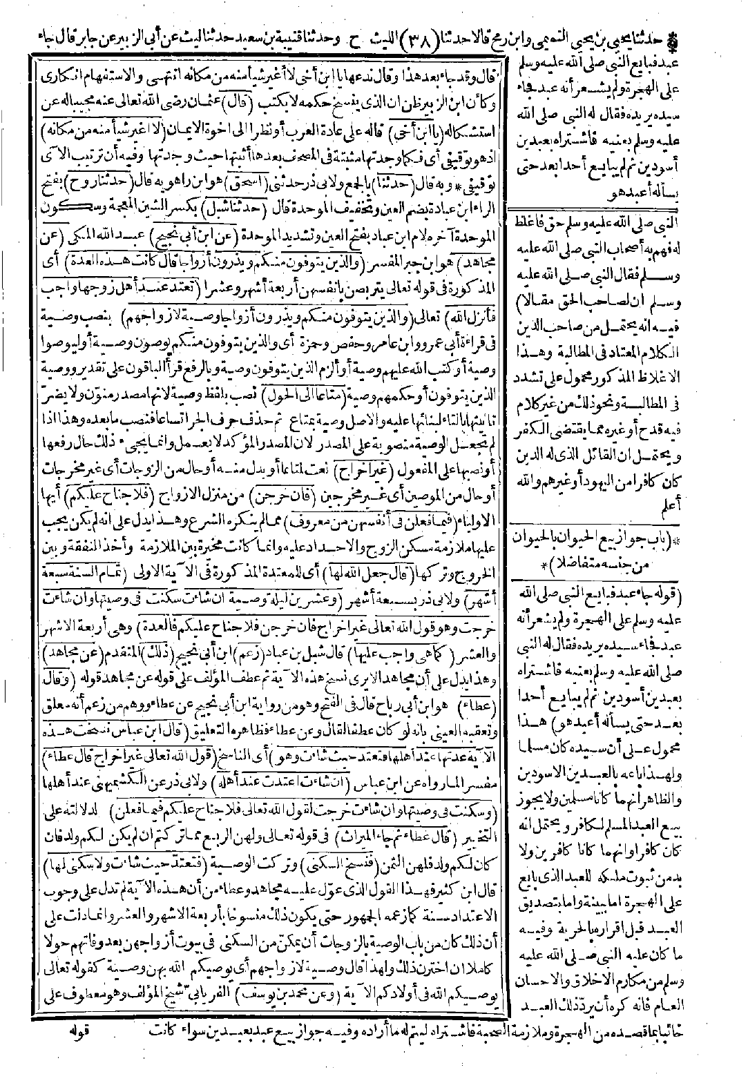4531 - حَدَّثَنَا إِسْحَاقُ حَدَّثَنَا رَوْحٌ، حَدَّثَنَا شِبْلٌ عَنِ ابْنِ أَبِي نَجِيحٍ، عَنْ مُجَاهِدٍ: {وَالَّذِينَ يُتَوَفَّوْنَ مِنْكُمْ وَيَذَرُونَ أَزْوَاجًا} قَالَ: كَانَتْ هَذِهِ الْعِدَّةُ تَعْتَدُّ عِنْدَ أَهْلِ زَوْجِهَا وَاجِبٌ، فَأَنْزَلَ اللَّهُ {وَالَّذِينَ يُتَوَفَّوْنَ مِنْكُمْ وَيَذَرُونَ أَزْوَاجًا وَصِيَّةً لأَزْوَاجِهِمْ مَتَاعًا إِلَى الْحَوْلِ غَيْرَ إِخْرَاجٍ فَإِنْ خَرَجْنَ فَلاَ جُنَاحَ عَلَيْكُمْ فِيمَا فَعَلْنَ فِي أَنْفُسِهِنَّ مِنْ مَعْرُوفٍ} قَالَ: جَعَلَ اللَّهُ لَهَا تَمَامَ السَّنَةِ سَبْعَةَ أَشْهُرٍ وَعِشْرِينَ لَيْلَةً وَصِيَّةً إِنْ شَاءَتْ سَكَنَتْ فِي وَصِيَّتِهَا وَإِنْ شَاءَتْ خَرَجَتْ وَهْوَ قَوْلُ اللَّهِ تَعَالَى: {غَيْرَ إِخْرَاجٍ فَإِنْ خَرَجْنَ فَلاَ جُنَاحَ عَلَيْكُمْ} فَالْعِدَّةُ كَمَا هِيَ وَاجِبٌ عَلَيْهَا زَعَمَ ذَلِكَ عَنْ مُجَاهِدٍ وَقَالَ عَطَاءٌ: قَالَ ابْنُ عَبَّاسٍ نَسَخَتْ هَذِهِ الآيَةُ عِدَّتَهَا عِنْدَ أَهْلِهَا فَتَعْتَدُّ حَيْثُ شَاءَتْ وَهْوَ قَوْلُ اللَّهِ تَعَالَى: {غَيْرَ إِخْرَاجٍ} قَالَ عَطَاءٌ: إِنْ شَاءَتِ اعْتَدَّتْ عِنْدَ أَهْلِهِ وَسَكَنَتْ فِي وَصِيَّتِهَا وَإِنْ شَاءَتْ خَرَجَتْ لِقَوْلِ اللَّهِ تَعَالَى: {فَلاَ جُنَاحَ عَلَيْكُمْ فِيمَا فَعَلْنَ} قَالَ عَطَاءٌ: ثُمَّ جَاءَ الْمِيرَاثُ فَنَسَخَ السُّكْنَى فَتَعْتَدُّ حَيْثُ شَاءَتْ وَلاَ سُكْنَى لَهَا، وَعَنْ مُحَمَّدِ بْنِ يُوسُفَ حَدَّثَنَا وَرْقَاءُ عَنِ ابْنِ أَبِي نَجِيحٍ عَنْ مُجَاهِدٍ بِهَذَا. وَعَنِ ابْنِ أَبِي نَجِيحٍ، عَنْ عَطَاءٍ، عَنِ ابْنِ عَبَّاسٍ قَالَ: نَسَخَتْ هَذِهِ الآيَةُ عِدَّتَهَا فِي أَهْلِهَا فَتَعْتَدُّ حَيْثُ شَاءَتْ لِقَوْلِ اللَّهِ تَعَالَى: {غَيْرَ إِخْرَاجٍ} نَحْوَهُ. [الحديث 4531 - أطرافه في: 5344].