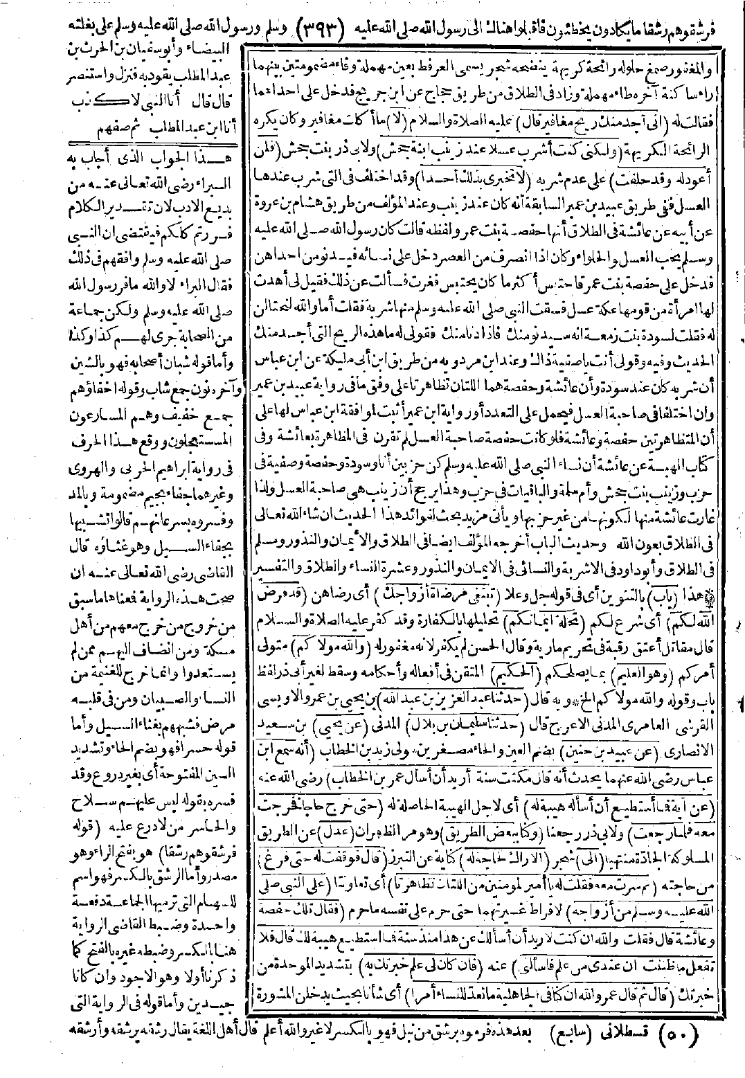 4913 - حَدَّثَنَا عَبْدُ الْعَزِيزِ بْنُ عَبْدِ اللَّهِ، حَدَّثَنَا سُلَيْمَانُ بْنُ بِلاَلٍ عَنْ يَحْيَى عَنْ عُبَيْدِ بْنِ حُنَيْنٍ أَنَّهُ سَمِعَ ابْنَ عَبَّاسٍ -رضي الله عنهما- يُحَدِّثُ أَنَّهُ قَالَ: مَكَثْتُ سَنَةً أُرِيدُ أَنْ أَسْأَلَ عُمَرَ بْنَ الْخَطَّابِ عَنْ آيَةٍ فَمَا أَسْتَطِيعُ أَنْ أَسْأَلَهُ هَيْبَةً لَهُ، حَتَّى خَرَجَ حَاجًّا فَخَرَجْتُ مَعَهُ، فَلَمَّا رَجَعْتُ وَكُنَّا بِبَعْضِ الطَّرِيقِ، عَدَلَ إِلَى الأَرَاكِ لِحَاجَةٍ لَهُ، قَالَ فَوَقَفْتُ لَهُ حَتَّى فَرَغَ، ثُمَّ سِرْتُ مَعَهُ فَقُلْتُ لَهُ: يَا أَمِيرَ الْمُؤْمِنِينَ مَنِ اللَّتَانِ تَظَاهَرَتَا عَلَى النَّبِيِّ -صَلَّى اللَّهُ عَلَيْهِ وَسَلَّمَ- مِنْ أَزْوَاجِهِ، فَقَالَ: تِلْكَ حَفْصَةُ وَعَائِشَةُ، قَالَ: فَقُلْتُ: وَاللَّهِ إِنْ كُنْتُ لأُرِيدُ أَنْ أَسْأَلَكَ عَنْ هَذَا مُنْذُ سَنَةٍ فَمَا أَسْتَطِيعُ هَيْبَةً لَكَ، قَالَ: فَلاَ تَفْعَلْ مَا ظَنَنْتَ أَنَّ عِنْدِي مِنْ عِلْمٍ فَاسْأَلْنِي فَإِنْ كَانَ لِي عِلْمٌ خَبَّرْتُكَ بِهِ، قَالَ: ثُمَّ قَالَ عُمَرُ: وَاللَّهِ إِنْ كُنَّا فِي الْجَاهِلِيَّةِ مَا نَعُدُّ لِلنِّسَاءِ أَمْرًا حَتَّى أَنْزَلَ اللَّهُ فِيهِنَّ مَا أَنْزَلَ وَقَسَمَ لَهُنَّ مَا قَسَمَ قَالَ: فَبَيْنَا أَنَا فِي أَمْرٍ أَتَأَمَّرُهُ إِذْ قَالَتِ امْرَأَتِي لَوْ صَنَعْتَ كَذَا وَكَذَا قَالَ: فَقُلْتُ لَهَا: مَالَكِ وَلِمَا هَا هُنَا، فِيمَا تَكَلُّفُكِ فِي أَمْرٍ أُرِيدُهُ فَقَالَتْ لِي: عَجَبًا لَكَ يَا ابْنَ الْخَطَّابِ مَا تُرِيدُ أَنْ تُرَاجَعَ أَنْتَ وَإِنَّ ابْنَتَكَ لَتُرَاجِعُ رَسُولَ اللَّهِ -صَلَّى اللَّهُ عَلَيْهِ وَسَلَّمَ- حَتَّى يَظَلَّ يَوْمَهُ غَضْبَانَ. فَقَامَ عُمَرُ فَأَخَذَ رِدَاءَهُ مَكَانَهُ حَتَّى دَخَلَ عَلَى