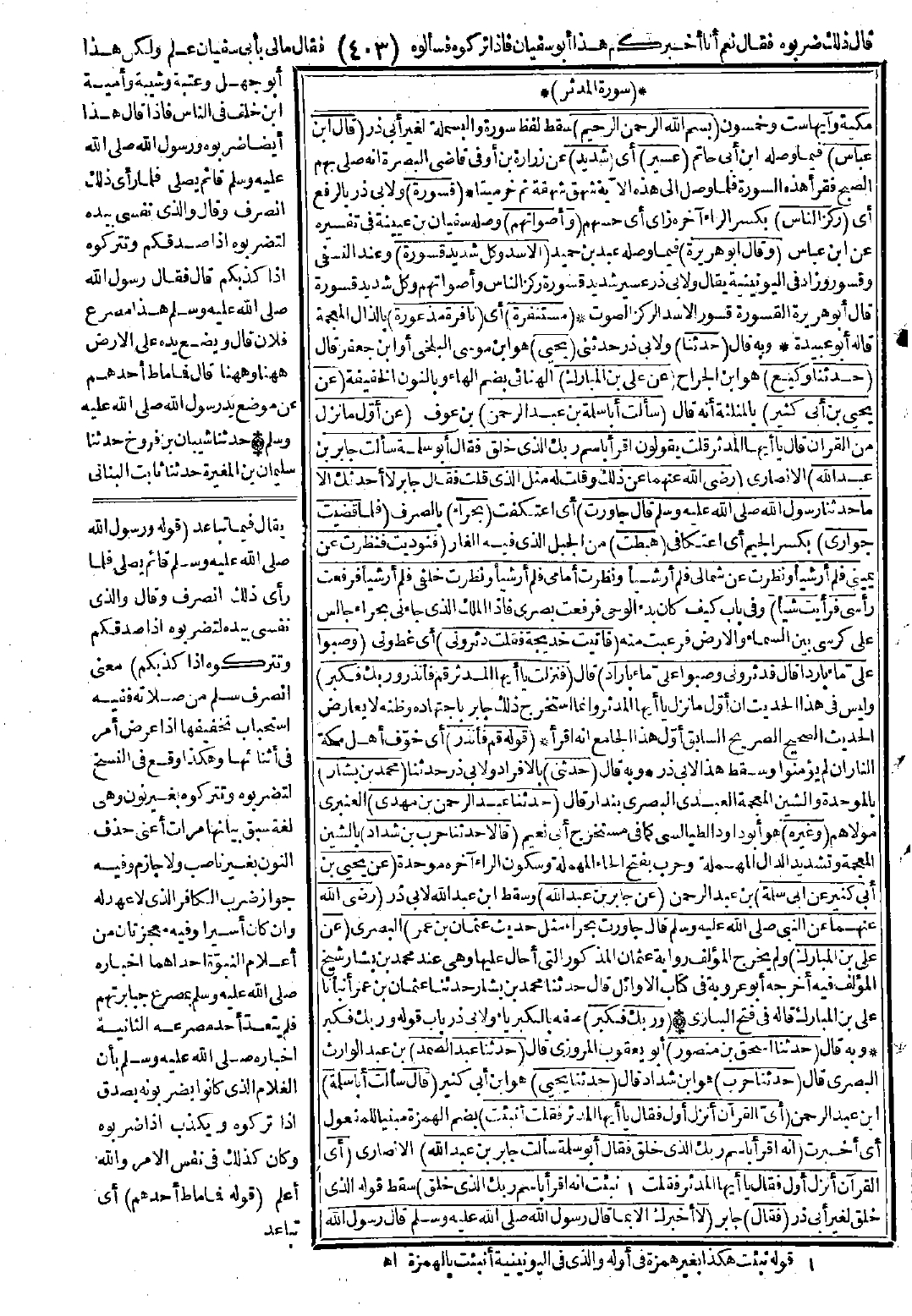 (بِسْمِ اللهِ الرَّحْمَنِ الرَّحِيمِ). قَالَ ابْنُ عَبَّاسٍ {عَسِيرٌ}: شَدِيدٌ. {قَسْوَرَةٍ}: رِكْزُ النَّاسِ وَأَصْوَاتُهُمْ. وَقَالَ أَبُو هُرَيْرَةَ: الأَسَدُ وَكُلُّ شَدِيدٍ قَسْوَرَةٌ. {مُسْتَنْفِرَةٌ}: نَافِرَةٌ مَذْعُورَةٌ.