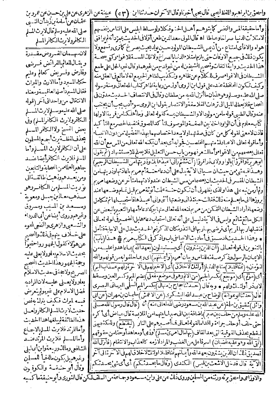 4549 - 4550 - حَدَّثَنَا حَجَّاجُ بْنُ مِنْهَالٍ، حَدَّثَنَا أَبُو عَوَانَةَ، عَنِ الأَعْمَشِ عَنْ أَبِي وَائِلٍ، عَنْ عَبْدِ اللَّهِ بْنِ مَسْعُودٍ -رضي الله عنه- قَالَ: قَالَ رَسُولُ اللَّهِ -صَلَّى اللَّهُ عَلَيْهِ وَسَلَّمَ-: «مَنْ حَلَفَ يَمِينَ صَبْرٍ لِيَقْتَطِعَ بِهَا مَالَ امْرِئٍ مُسْلِمٍ لَقِيَ اللَّهَ وَهْوَ عَلَيْهِ غَضْبَانُ» فَأَنْزَلَ اللَّهُ تَصْدِيقَ ذَلِكَ {إِنَّ الَّذِينَ يَشْتَرُونَ بِعَهْدِ اللَّهِ وَأَيْمَانِهِمْ ثَمَنًا قَلِيلًا أُولَئِكَ لاَ خَلاَقَ لَهُمْ فِي الآخِرَةِ} إِلَى آخِرِ الآيَةِ. قَالَ: فَدَخَلَ الأَشْعَثُ بْنُ قَيْسٍ وَقَالَ: مَا يُحَدِّثُكُمْ أَبُو عَبْدِ الرَّحْمَنِ قُلْنَا: كَذَا وَكَذَا قَالَ فِيَّ أُنْزِلَتْ كَانَتْ لِي بِئْرٌ فِي أَرْضِ ابْنِ عَمٍّ لِي قَالَ النَّبِيُّ -صَلَّى اللَّهُ عَلَيْهِ وَسَلَّمَ-: «بَيِّنَتُكَ أَوْ يَمِينُهُ» فَقُلْتُ إِذًا يَحْلِفَ يَا رَسُولَ اللَّهِ فَقَالَ النَّبِيُّ -صَلَّى اللَّهُ عَلَيْهِ وَسَلَّمَ-: «مَنْ حَلَفَ عَلَى يَمِينِ صَبْرٍ يَقْتَطِعُ بِهَا مَالَ امْرِئٍ مُسْلِمٍ وَهْوَ فِيهَا فَاجِرٌ لَقِيَ اللَّهَ وَهْوَ عَلَيْهِ غَضْبَانٌ».