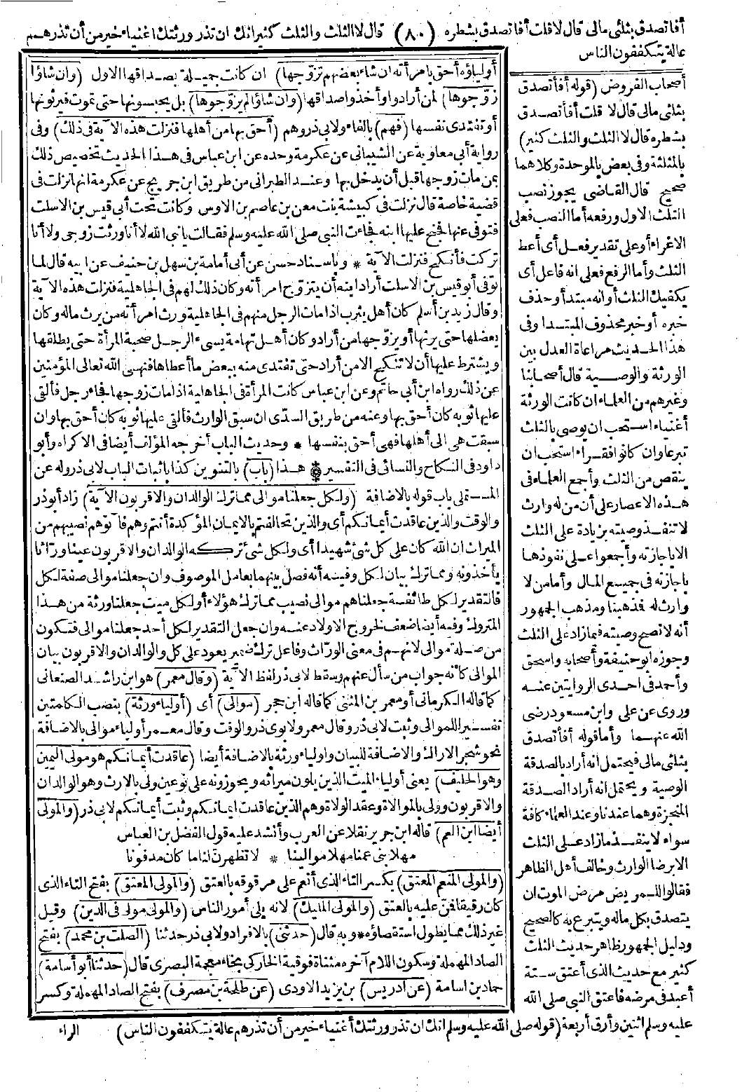 4580 - حَدَّثَنِي الصَّلْتُ بْنُ مُحَمَّدٍ، حَدَّثَنَا أَبُو أُسَامَةَ عَنْ إِدْرِيسَ عَنْ طَلْحَةَ بْنِ مُصَرِّفٍ، عَنْ سَعِيدِ بْنِ جُبَيْرٍ عَنِ ابْنِ عَبَّاسٍ -رضي الله عنهما- {وَلِكُلٍّ جَعَلْنَا مَوَالِيَ} قَالَ: وَرَثَةً {وَالَّذِينَ عَاقَدَتْ أَيْمَانُكُمْ} كَانَ الْمُهَاجِرُونَ لَمَّا قَدِمُوا الْمَدِينَةَ يَرِثُ الْمُهَاجِرُ الأَنْصَارِيَّ دُونَ ذَوِي رَحِمِهِ لِلأُخُوَّةِ الَّتِي آخَى النَّبِيُّ -صَلَّى اللَّهُ عَلَيْهِ وَسَلَّمَ- بَيْنَهُمْ فَلَمَّا نَزَلَتْ {وَلِكُلٍّ جَعَلْنَا مَوَالِيَ} نُسِخَتْ ثُمَّ قَالَ: {وَالَّذِينَ عَاقَدَتْ أَيْمَانُكُمْ} مِنَ النَّصْرِ وَالرِّفَادَةِ وَالنَّصِيحَةِ وَقَدْ ذَهَبَ الْمِيرَاثُ وَيُوصِي لَهُ سَمِعَ أَبُو أُسَامَةَ إِدْرِيسَ وَسَمِعَ إِدْرِيسُ طَلْحَةَ.