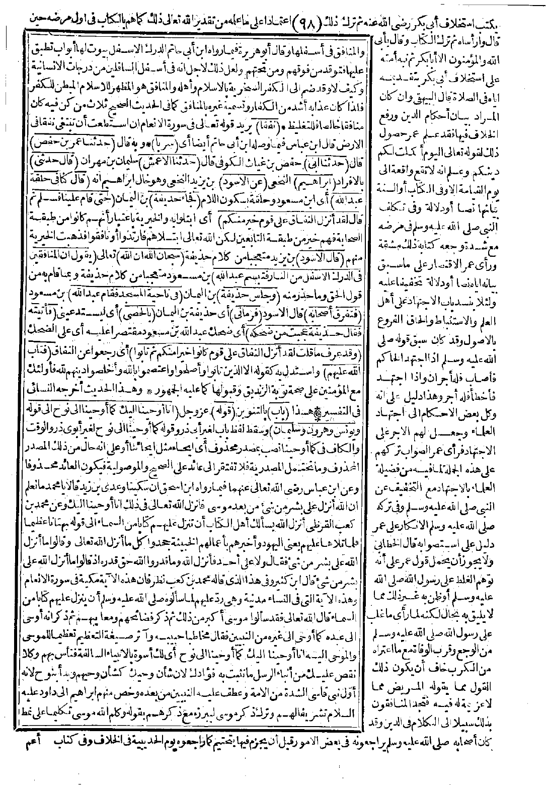 4602 - حَدَّثَنَا عُمَرُ بْنُ حَفْصٍ، حَدَّثَنَا أَبِي، حَدَّثَنَا الأَعْمَشُ، قَالَ: حَدَّثَنِي إِبْرَاهِيمُ عَنِ الأَسْوَدِ قَالَ: كُنَّا فِي حَلْقَةِ عَبْدِ اللَّهِ، فَجَاءَ حُذَيْفَةُ حَتَّى قَامَ عَلَيْنَا فَسَلَّمَ ثُمَّ قَالَ: لَقَدْ أُنْزِلَ النِّفَاقُ عَلَى قَوْمٍ خَيْرٍ مِنْكُمْ، قَالَ الأَسْوَدُ: سُبْحَانَ اللَّهِ إِنَّ اللَّهَ يَقُولُ: {إِنَّ الْمُنَافِقِينَ فِي الدَّرَكِ الأَسْفَلِ مِنَ النَّارِ} [النساء: 145] فَتَبَسَّمَ عَبْدُ اللَّهِ وَجَلَسَ حُذَيْفَةُ فِي نَاحِيَةِ الْمَسْجِدِ فَقَامَ عَبْدُ اللَّهِ فَتَفَرَّقَ أَصْحَابُهُ فَرَمَانِي بِالْحَصَا فَأَتَيْتُهُ فَقَالَ حُذَيْفَةُ: عَجِبْتُ مِنْ ضَحِكِهِ، وَقَدْ عَرَفَ مَا قُلْتُ لَقَدْ أُنْزِلَ النِّفَاقُ عَلَى قَوْمٍ كَانُوا خَيْرًا مِنْكُمْ ثُمَّ تَابُوا فَتَابَ اللَّهُ عَلَيْهِمْ.