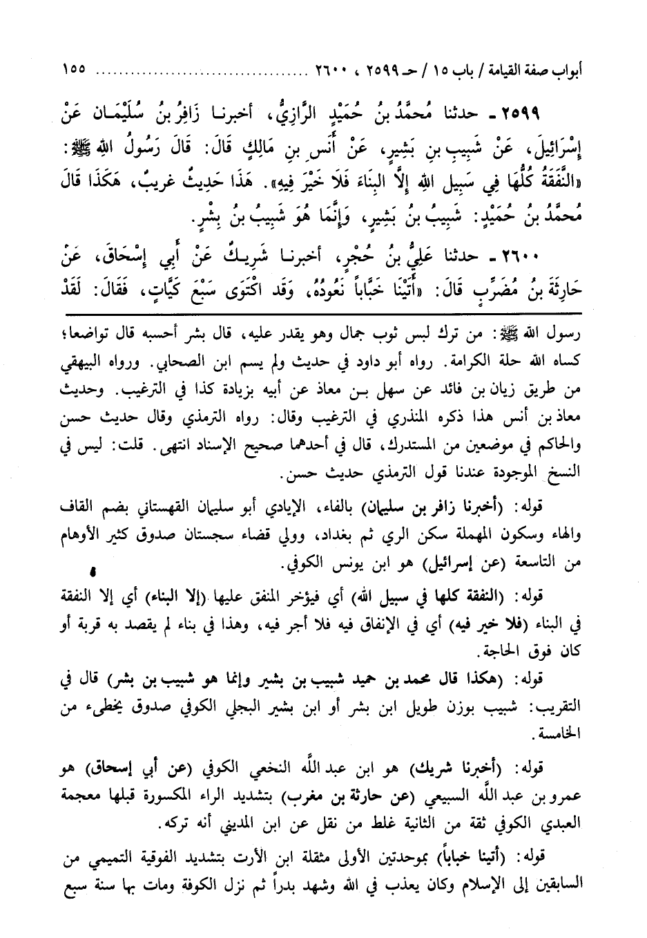 [2483] قوله (أخبرنا شريك) هو بْنُ عَبْدِ اللَّهِ النَّخَعِيُّ الْكُوفِيُّ (عَنْ أَبِي إِسْحَاقَ) هُوَ عَمْرُو بْنُ عَبْدِ اللَّهِ السَّبِيعِيُّ (عَنْ حَارِثَةَ بْنِ مُغَرِّبٍ) بِتَشْدِيدِ الرَّاءِ الْمَكْسُورَةِ قَبْلهَا مُعْجَمَةٌ الْعَبْدِيِّ الْكُوفِيِّ ثِقَةٌ مِنَ الثَّانِيَةِ غَلِطَ مَنْ نَقَلَ عَنِ بن المدني أنه تركه