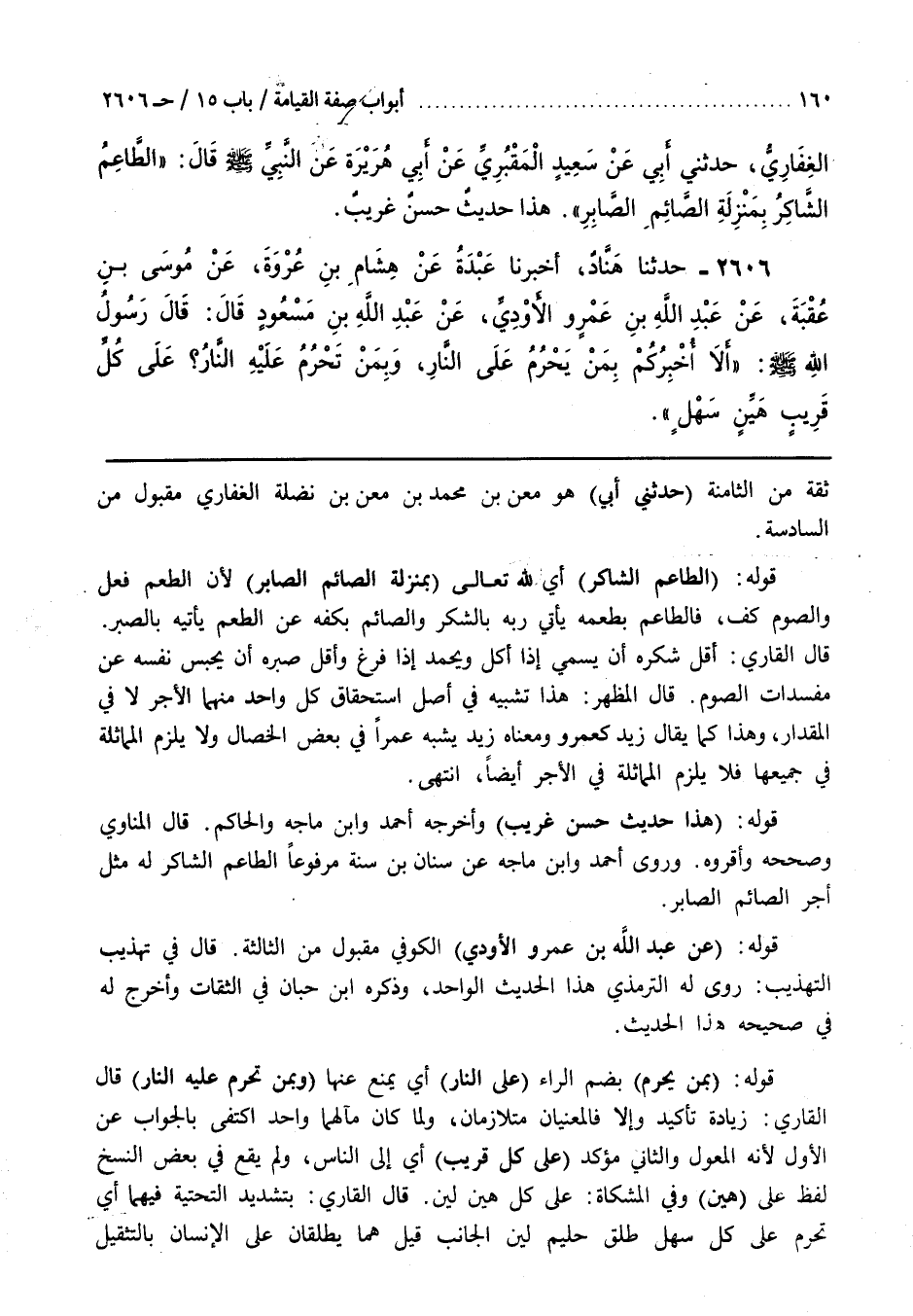 وَرَوَى أحمد وبن مَاجَهْ عَنْ سِنَانِ بْنِ سَنَّةَ مَرْفُوعًا الطَّاعِمُ الشاكر له مثل أجر الصائم الصاب [2488] ر قَوْلُهُ (عَنْ عَبْدِ اللَّهِ بْنِ عَمْرٍو الْأَوْدِيِّ) الْكُوفِيِّ مَقْبُولٌ مِنَ الثَّالِثَةِ