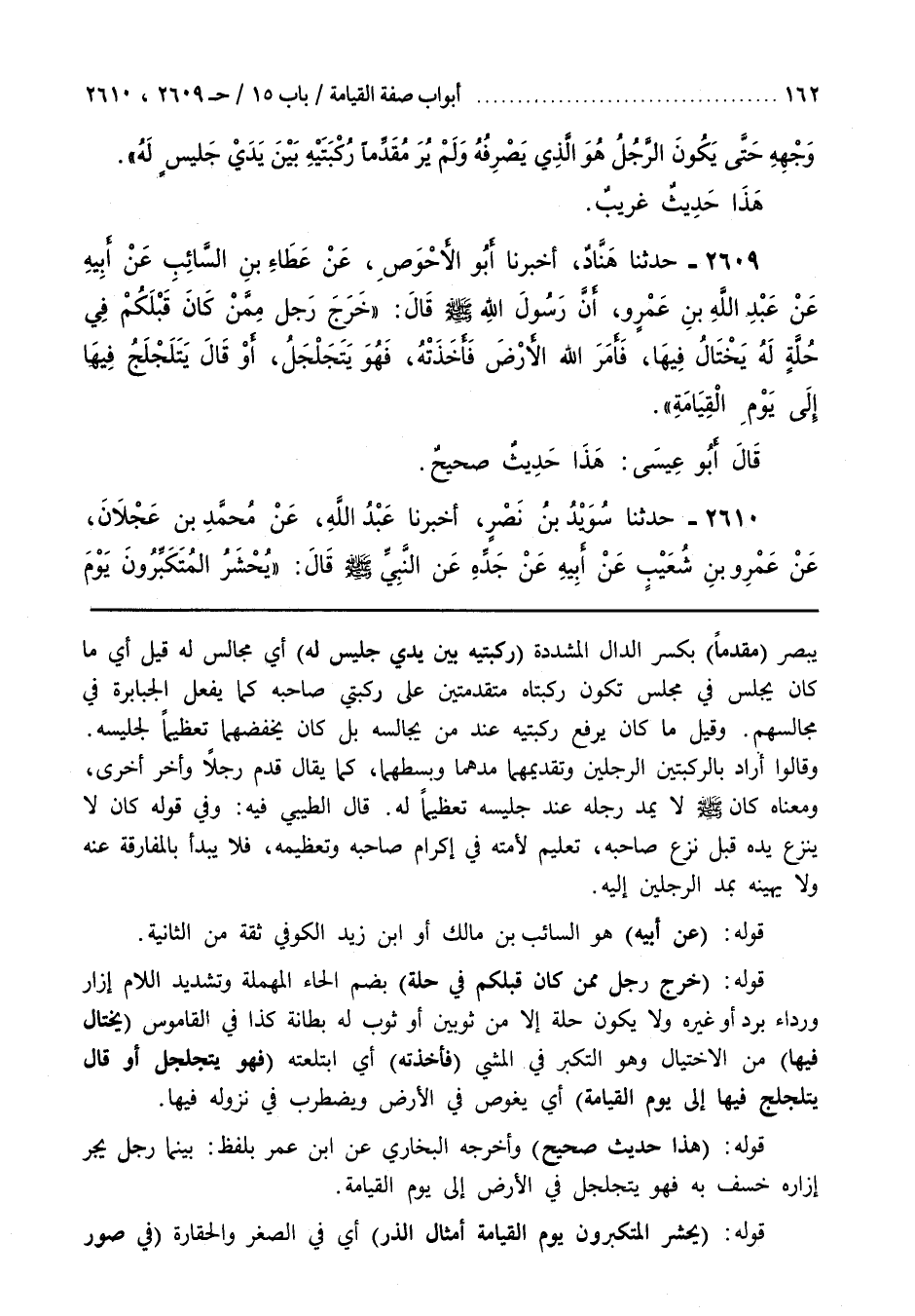 قَوْلُهُ (هَذَا حَدِيثٌ صَحِيحٌ) وَأَخْرَجَهُ الْبُخَارِيُّ عَنِ بن عُمَرَ بِلَفْظِ بَيْنَمَا رَجُلٌ يَجُرُّ إِزَارَهُ خُسِفَ بِهِ فَهُوَ يَتَجَلْجَلُ فِي الْأَرْضِ إِلَى يَوْمِ الْقِيَامَةِ