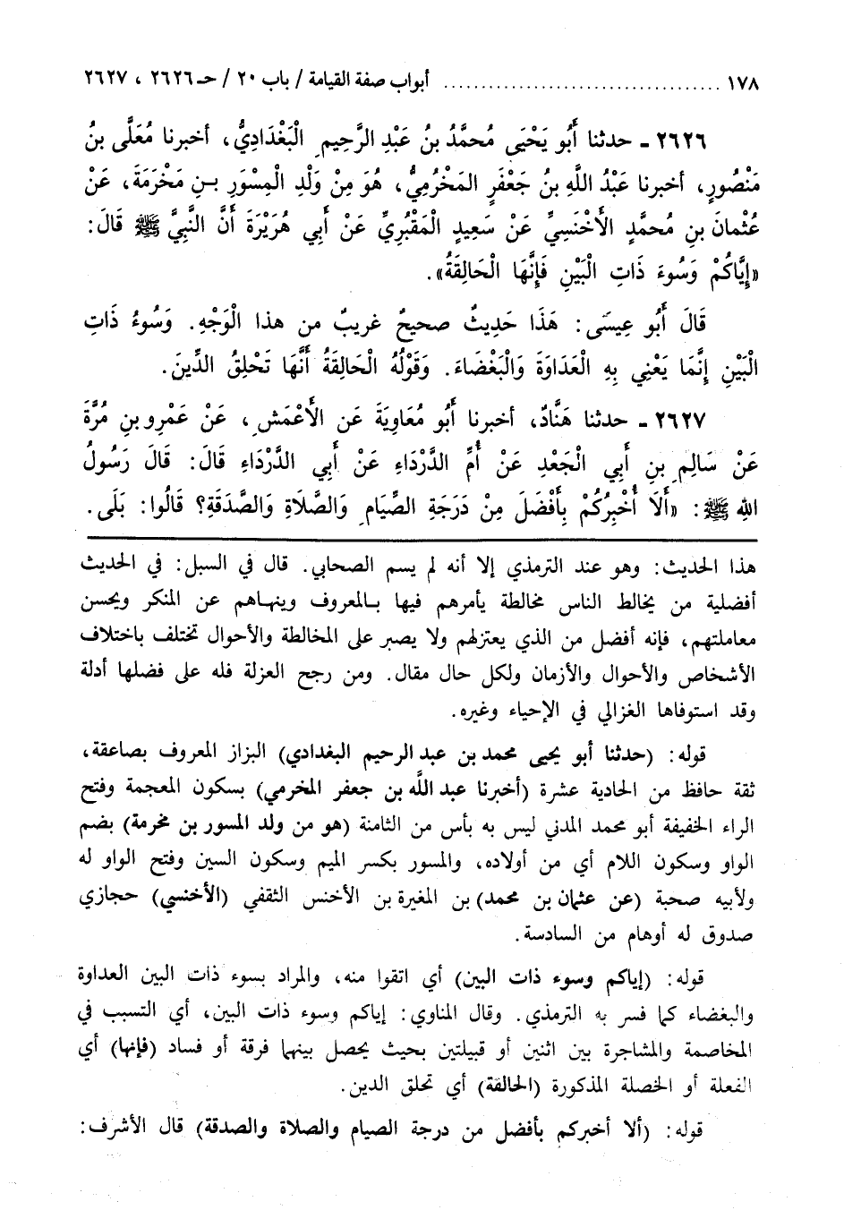 [2509] قَوْلُهُ (أَلَا أُخْبِرُكُمْ بِأَفْضَلَ مِنْ دَرَجَةِ الصِّيَامِ وَالصَّلَاةِ وَالصَّدَقَةِ) قَالَ الْأَشْرَفُ