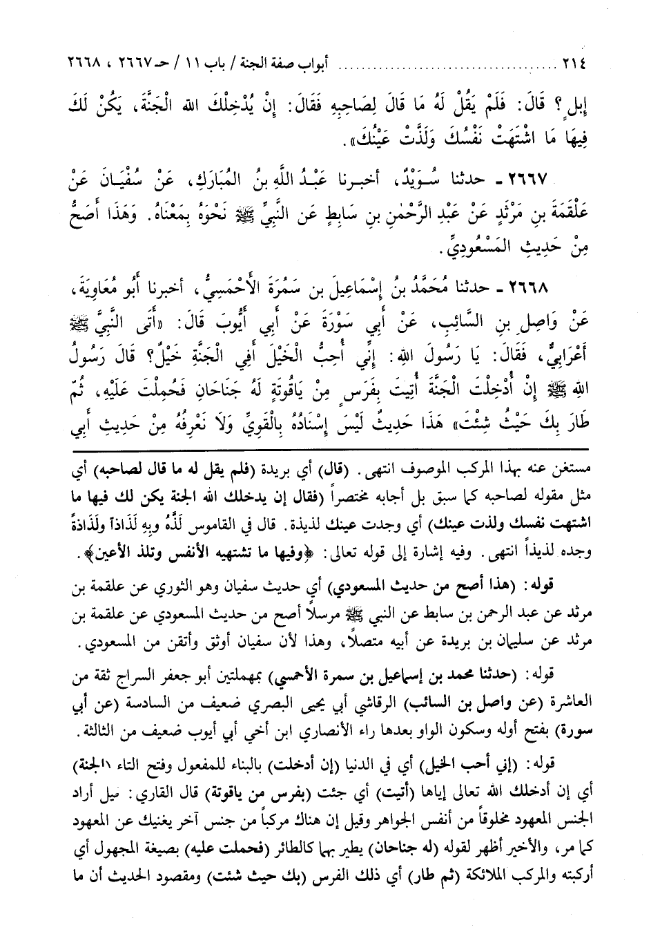 وَفِيهِ إِشَارَةٌ إِلَى قَوْلِهِ تَعَالَى وفيها ما تشتهيه الأنفس وتلذ الأعين قَوْلُهُ (هَذَا أَصَحُّ مِنْ حَدِيثِ الْمَسْعُودِيِّ) أَيْ حَدِيثِ سُفْيَانَ وَهُوَ الثَّوْرِيُّ عَنْ عَلْقَمَةَ بْنِ مَرْثَدٍ عَنْ عَبْدِ الرَّحْمَنِ بْنِ سَابِطٍ عَنِ النَّبِيِّ صَلَّى اللَّهُ عَلَيْهِ وَسَلَّمَ مُرْسَلًا أَصَحُّ مِنْ حَدِيثِ الْمَسْعُودِيِّ عَنْ عَلْقَمَةَ بْنِ مَرْثَدٍ عَنْ سُلَيْمَانَ بْنِ بُرَيْدَةَ عَنْ أَبِيهِ مُتَّصِلًا وَهَذَا لِأَنَّ سُفْيَانَ أَوْثَقُ وَأَتْقَنُ مِنَ الْمَسْعُودِيِّ