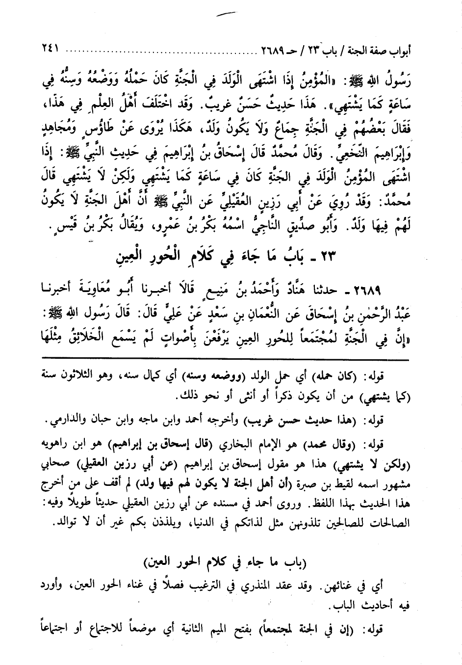 وَرَوَى أَحْمَدُ فِي مُسْنَدِهِ عَنْ أَبِي رَزِينٍ الْعُقَيْلِيِّ حَدِيثًا طَوِيلًا وَفِيهِ الصَّالِحَاتُ لِلصَّالِحَيْنِ تَلَذُّونَهُنَّ مِثْلَ لَذَّاتِكُمْ فِي الدُّنْيَا وَيَلْذَذْنَ بِكُمْ غَيْرَ أَنْ لَا تَوَالُدَ