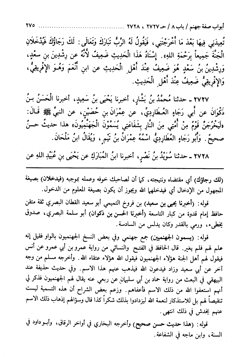 قَوْلُهُ (هَذَا حَدِيثٌ حَسَنٌ صَحِيحٌ) وَأَخْرَجَهُ الْبُخَارِيُّ فِي أَوَاخِرِ الرِّقَاقِ وَأَبُو داود في السنة وبن مَاجَهْ فِي الشَّفَاعَةِ