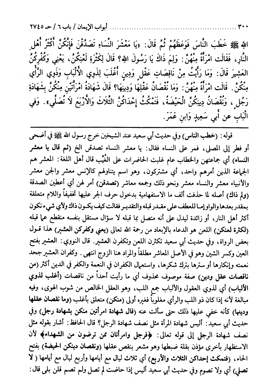 قَوْلُهُ (خَطَبَ النَّاسَ) وَفِي حَدِيثِ أَبِي سَعِيدٍ عِنْدَ الشَّيْخَيْنِ خَرَجَ رَسُولُ اللَّهِ صَلَّى اللَّهُ عَلَيْهِ وَسَلَّمَ في أضح أَوْ فِطْرٍ إِلَى الْمُصَلَّى فَمَرَّ عَلَى النِّسَاءِ فَقَالَ يَا مَعْشَرَ النِّسَاءِ تَصَدَّقْنَ إِلَخْ (ثُمَّ قَالَ يَا مَعْشَرَ) النِّسَاءِ أَيْ جَمَاعَتَهُنَّ وَالْخِطَابُ عَامٌّ غَلَبَتِ الْحَاضِرَاتُ عَلَى الْغُيَّبِ قَالَ أَهْلُ اللُّغَةِ الْمَعْشَرُ هُمُ الْجَمَاعَةُ الَّذِينَ أَمْرُهُمْ وَاحِدٌ أَيْ مُشْتَرِكُونَ وَهُوَ اسْمٌ يَتَنَاوَلُهُمْ كَالْإِنْسِ مَعْشَرٌ وَالْجِنِّ مَعْشَرٌ وَالْأَنْبِيَاءِ مَعْشَرٌ وَالنِّسَاءِ مَعْشَرٌ وَنَحْوِ ذَلِكَ وَجَمْعُهُ مَعَاشِرَ (تَصَدَّقْنَ) أَمْرٌ لَهُنَّ أَيْ أَعْطِينَ الصَّدَقَةَ (وَلِمَ ذَاكَ) أَصْلُهُ لِمَا حُذِفَتْ أَلِفُ مَا الِاسْتِفْهَامِيَّةِ بِدُخُولِ حَرْفِ الْجَرِّ عَلَيْهَا تخفيفا واللام متعلقة مقدر بَعْدَهَا وَالْوَاوُ إِمَّا لِلْعَطْفِ عَلَى مُقَدَّرٍ قَبْلَهُ وَالتَّقْدِيرُ فَقَالَتْ كَيْفَ يَكُونُ ذَاكَ وَلِأَيِّ شَيْءٍ نَكُونُ أَكْثَرَ أَهْلِ النَّارِ أَوْ زَائِدَةٌ لِيَدُلَّ عَلَى أَنَّهُ مُتَّصِلٌ بِمَا قَبْلَهُ لَا سُؤَالٌ مُسْتَقِلٌّ بِنَفْسِهِ مُنْقَطِعٌ عَمَّا قَبْلَهُ (لِكَثْرَةِ لَعْنِكُنَّ) اللَّعْنُ هُوَ الدُّعَاءُ بِالْإِبْعَادِ مِنْ رَحْمَةِ اللَّهِ تَعَالَى (يَعْنِي وَكُفْرِكُنَّ الْعَشِيرَ) هَذَا وَقَوْلُ بَعْضِ الرُّوَاةِ وَفِي حَدِيثِ أَبِي سَعِيدٍ تُكْثِرْنَ اللَّعْنَ وَتَكْفُرْنَ الْعَشِيرَ