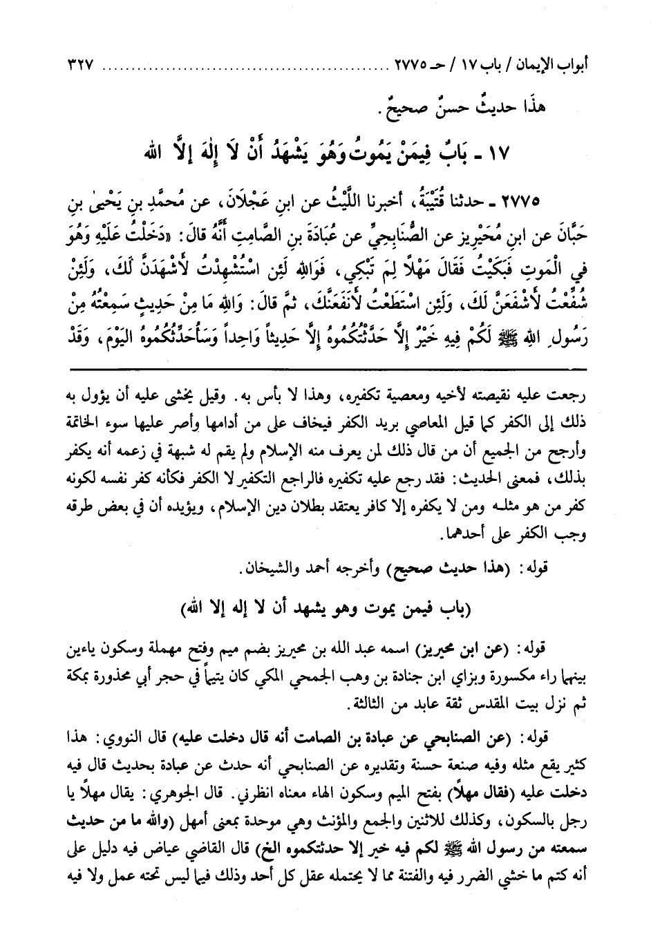 7 - (بَاب مَا جَاءَ فِيمَنْ يَمُوتُ وَهُوَ يَشْهَدُ أَنْ لَا إِلَهَ إلا الله)