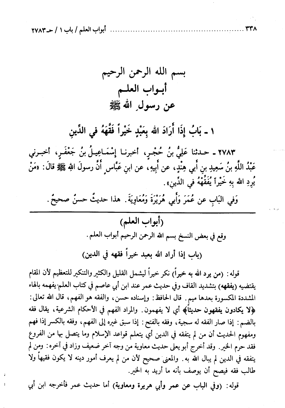 وَقَعَ فِي بَعْضِ النُّسَخِ بِسْمِ اللَّهِ الرحمن الرحيم أبواب الْعِلْمِ